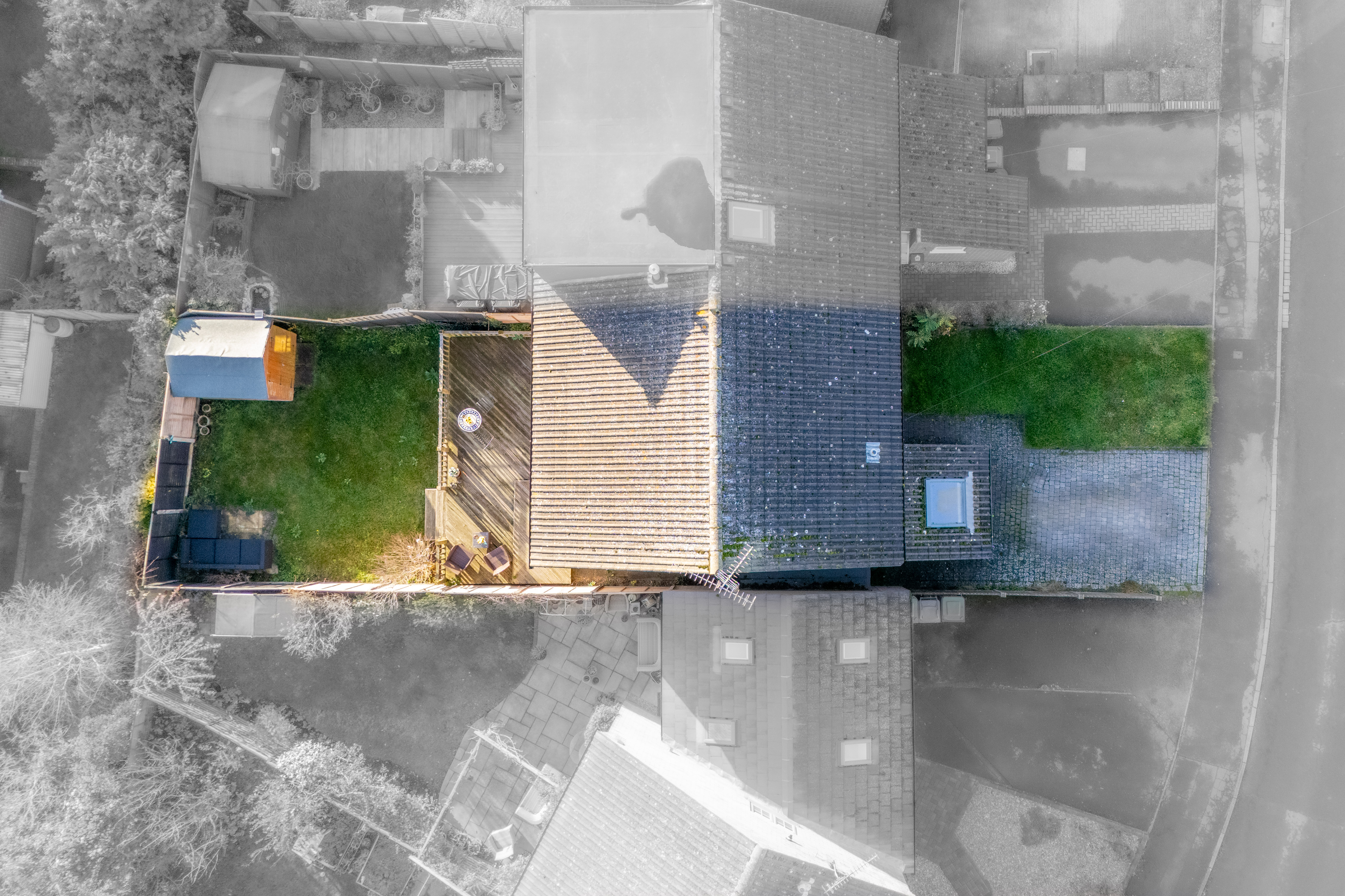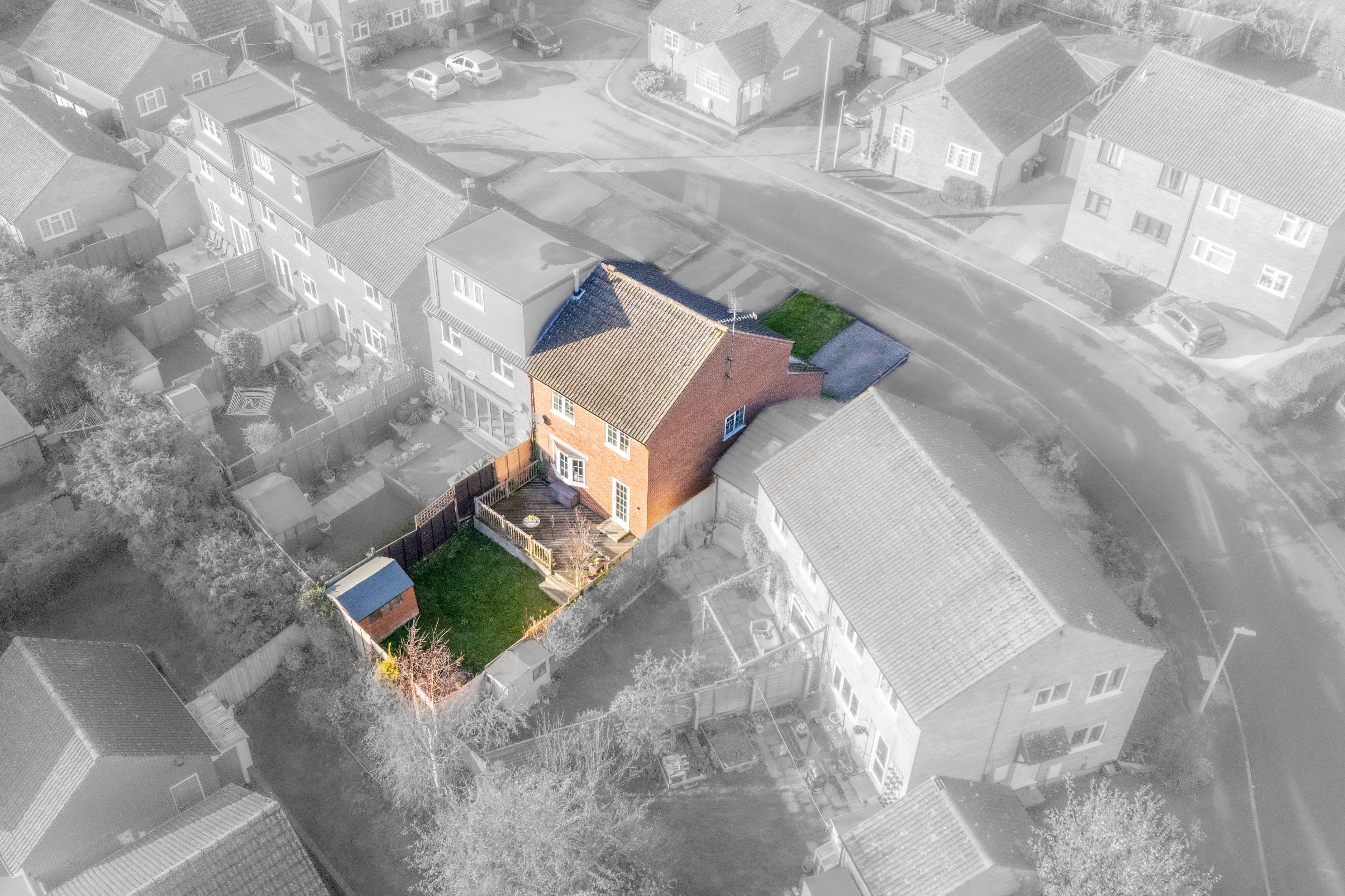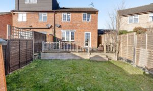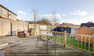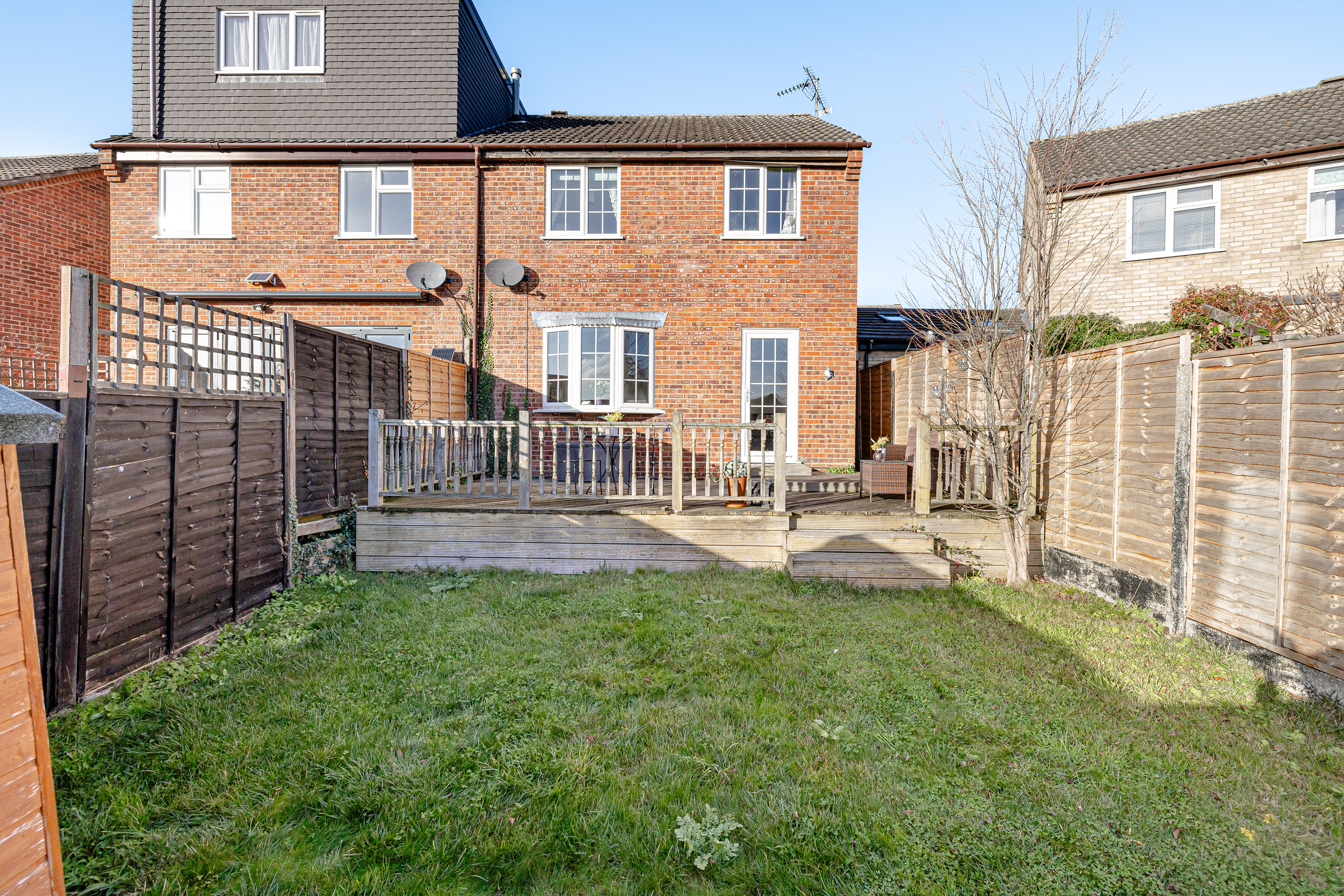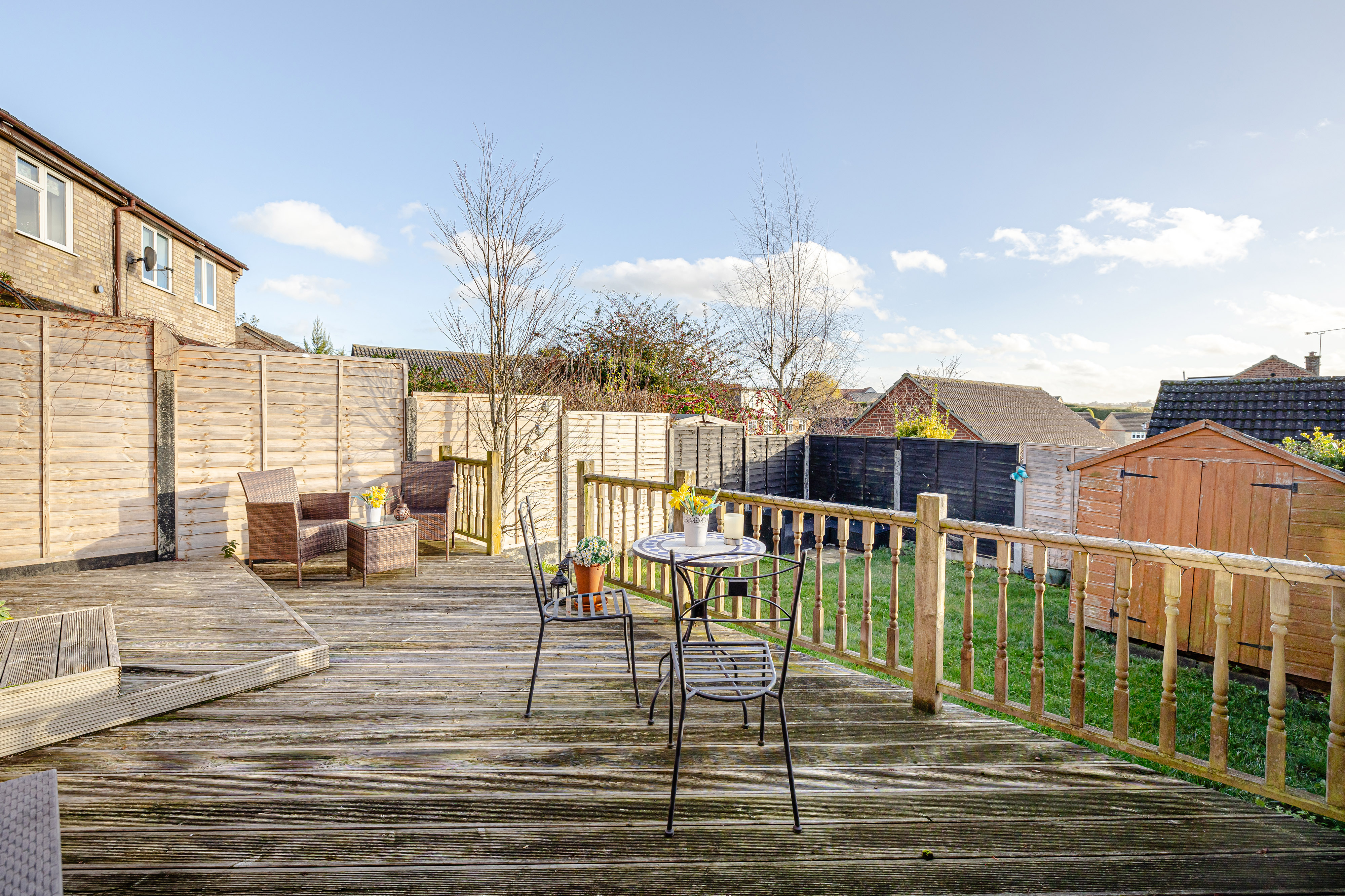 - Private rear garden with raised decking, lawn and storage shed, plus driveway parking to the front