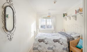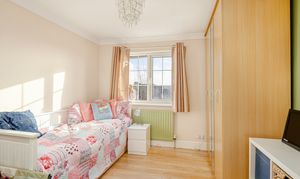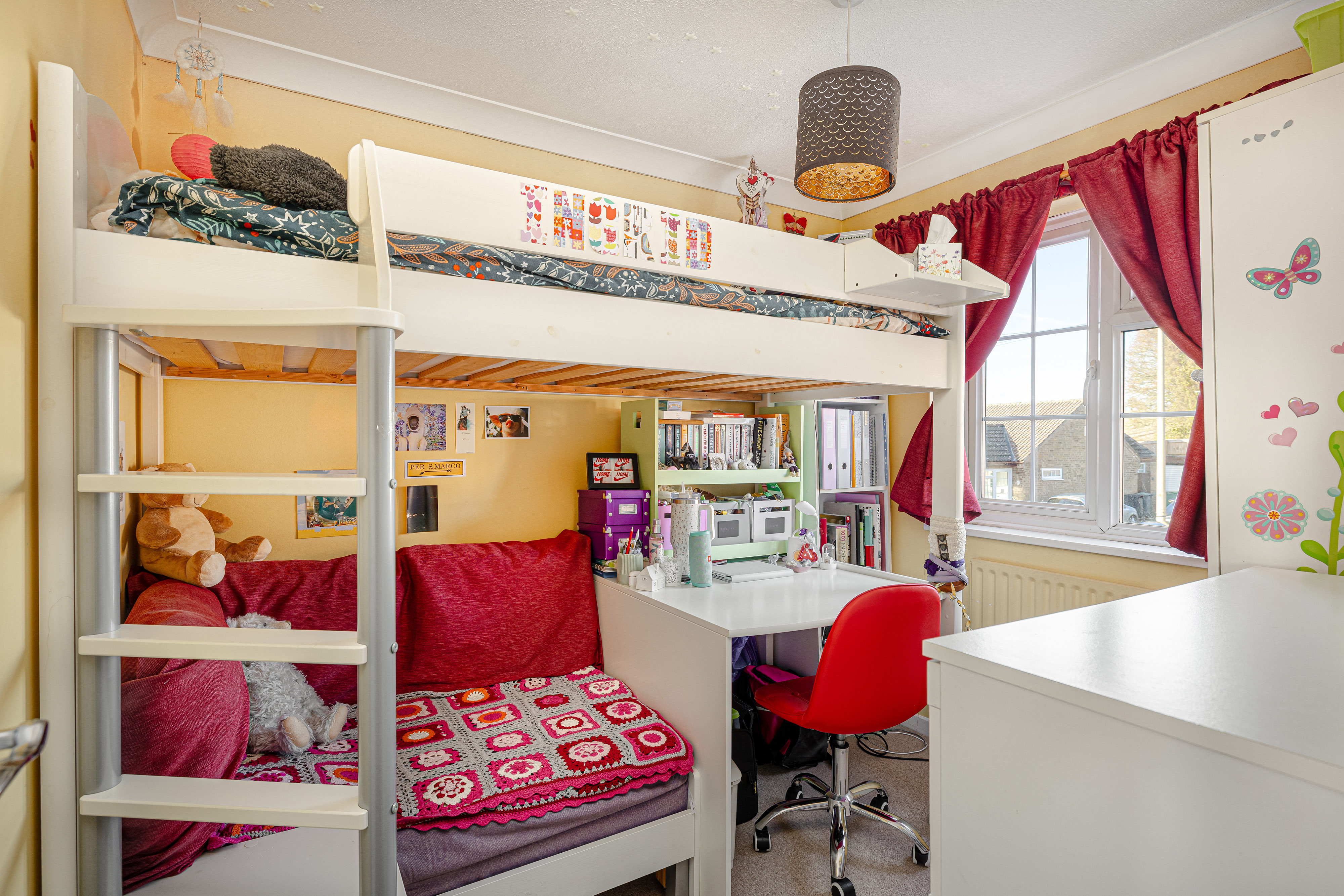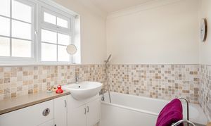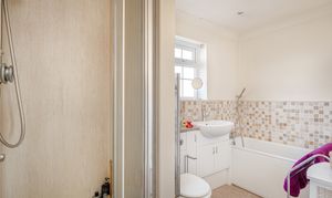 Upstairs, you’ll find three bedrooms. The principal bedroom sits to the rear and enjoys lovely natural light, while bedroom two provides another strong double. The third bedroom makes an excellent child’s room, nursery or home office. The family bathroom is spacious and well-equipped, offering both a bath and a separate shower enclosure.