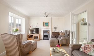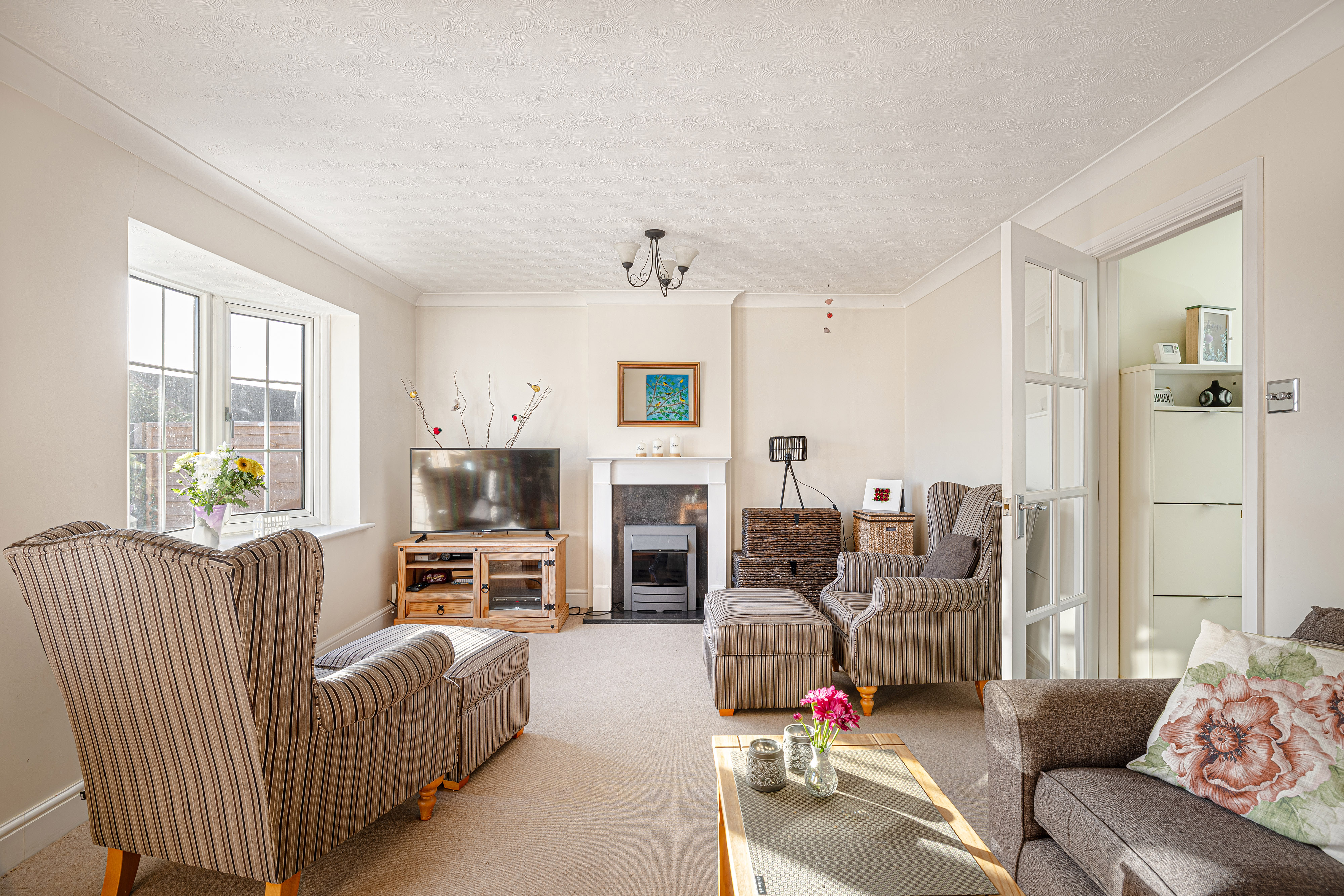 The sitting room spans the full width of the rear of the home and is flooded with natural light via a deep bay window and French doors opening to the garden. With a central fireplace providing a natural focal point, this room is warm, comfortable and ideal for relaxation or social evenings.