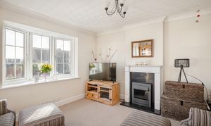 - Spacious dual-aspect sitting room with bay window, feature fireplace and French doors to garden