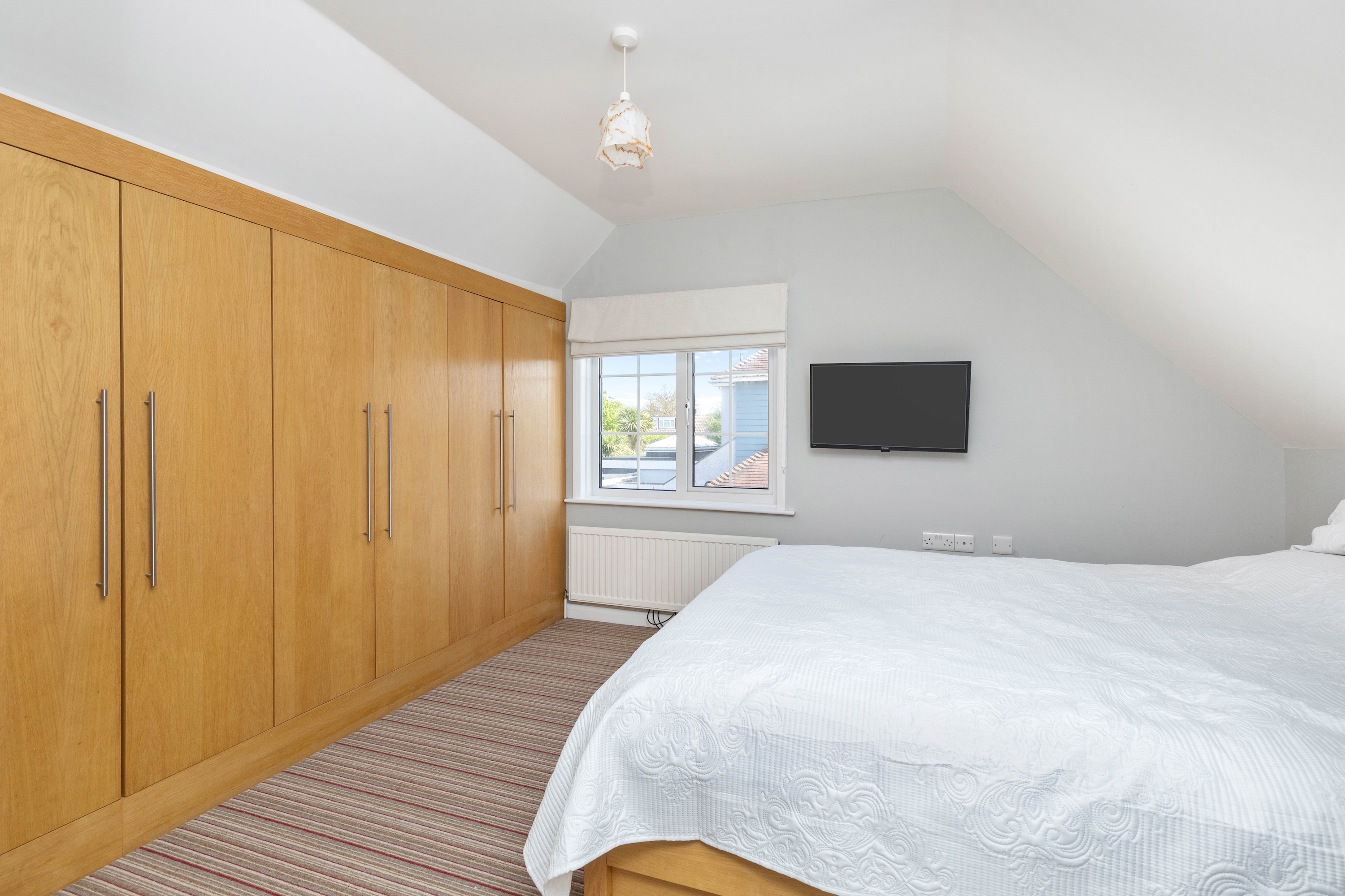 Upstairs, there are three bedrooms, with the main two enjoying built-in wardrobes. The family shower room is accessed from the landing.
