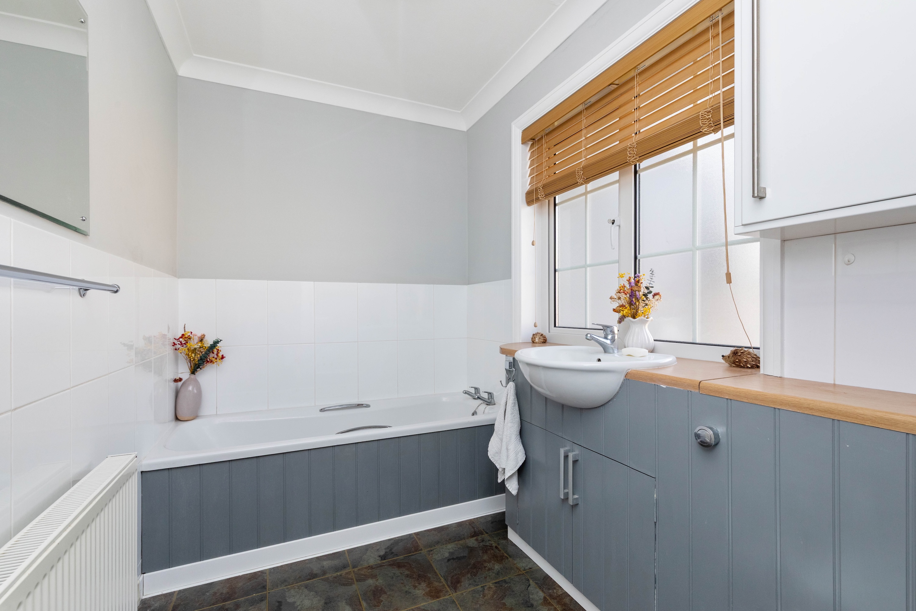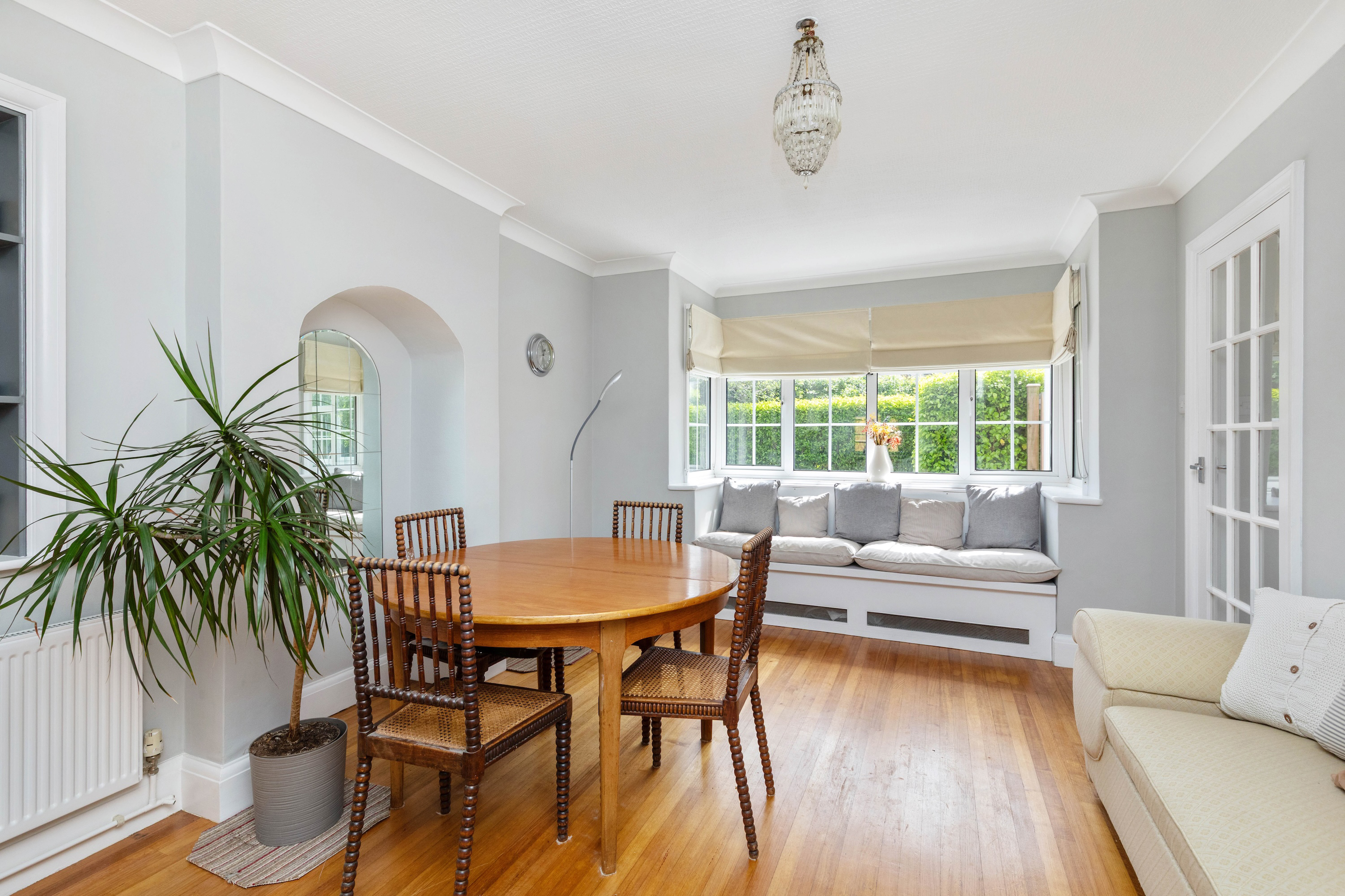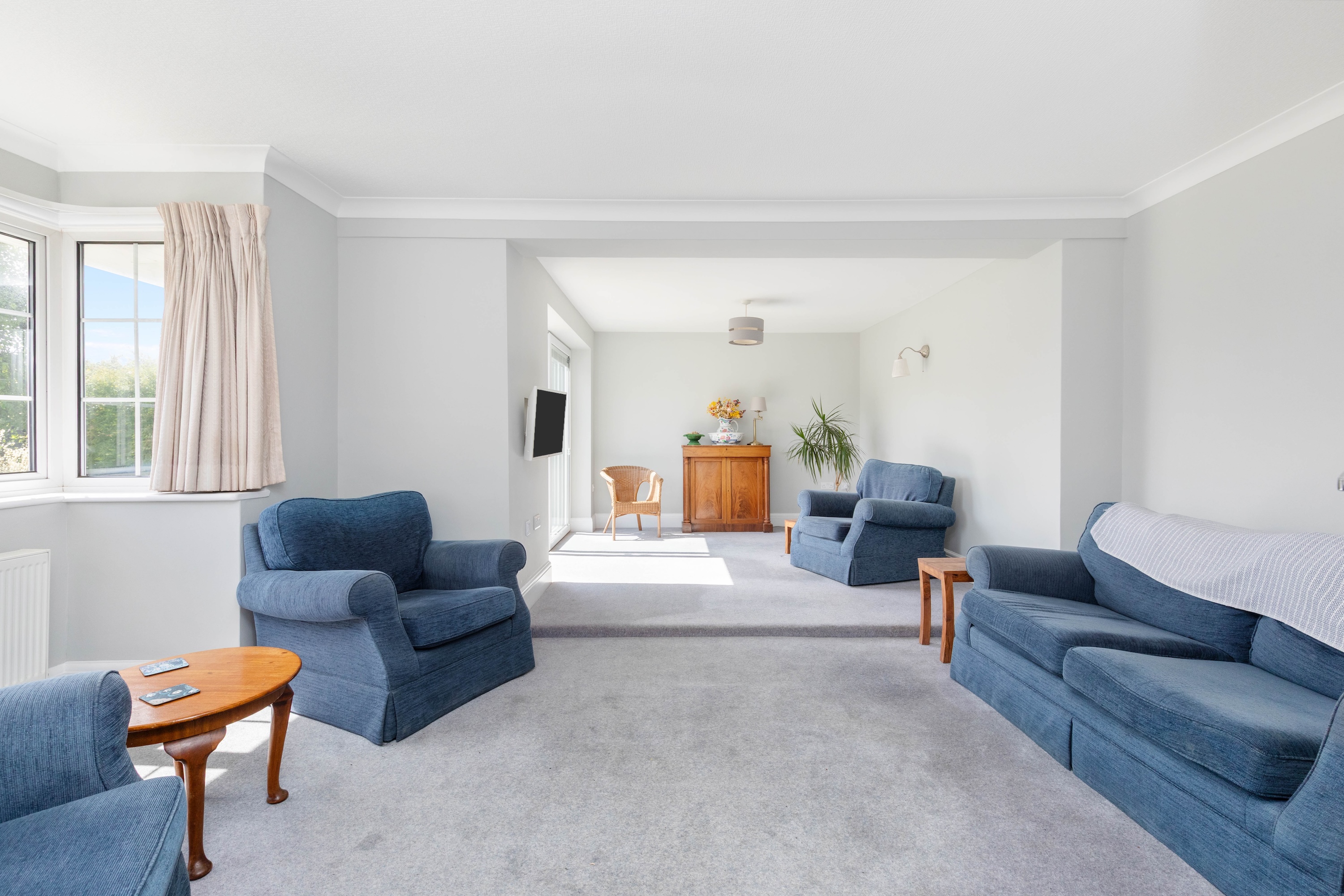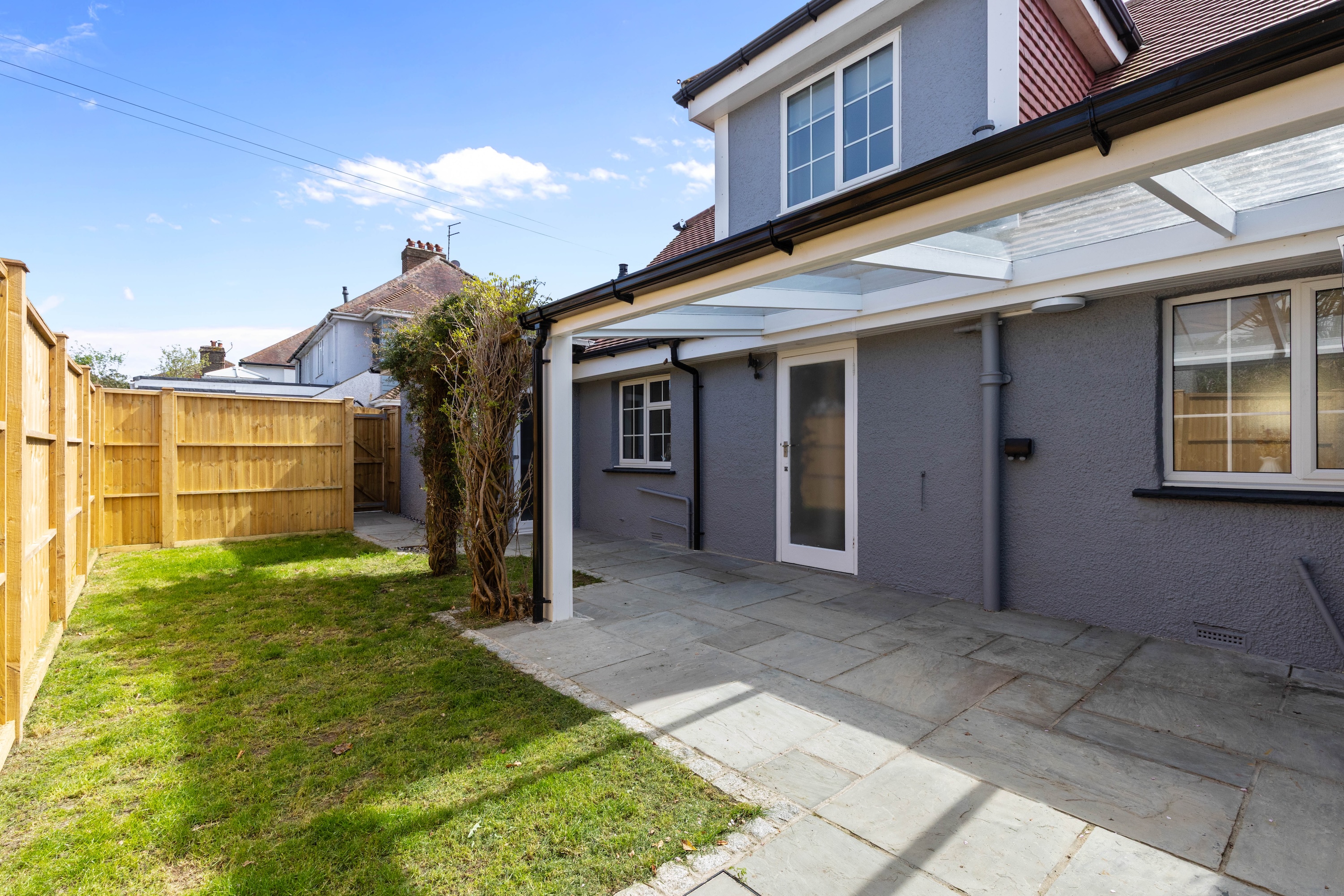 The property is beautifully presented throughout, and the welcoming entrance hall sets the tone, leading to all principal rooms. The spacious living room benefits from a southerly aspect, bathing the area in natural light. A set of sliding doors leads to a private terrace area, ideal for entertaining.