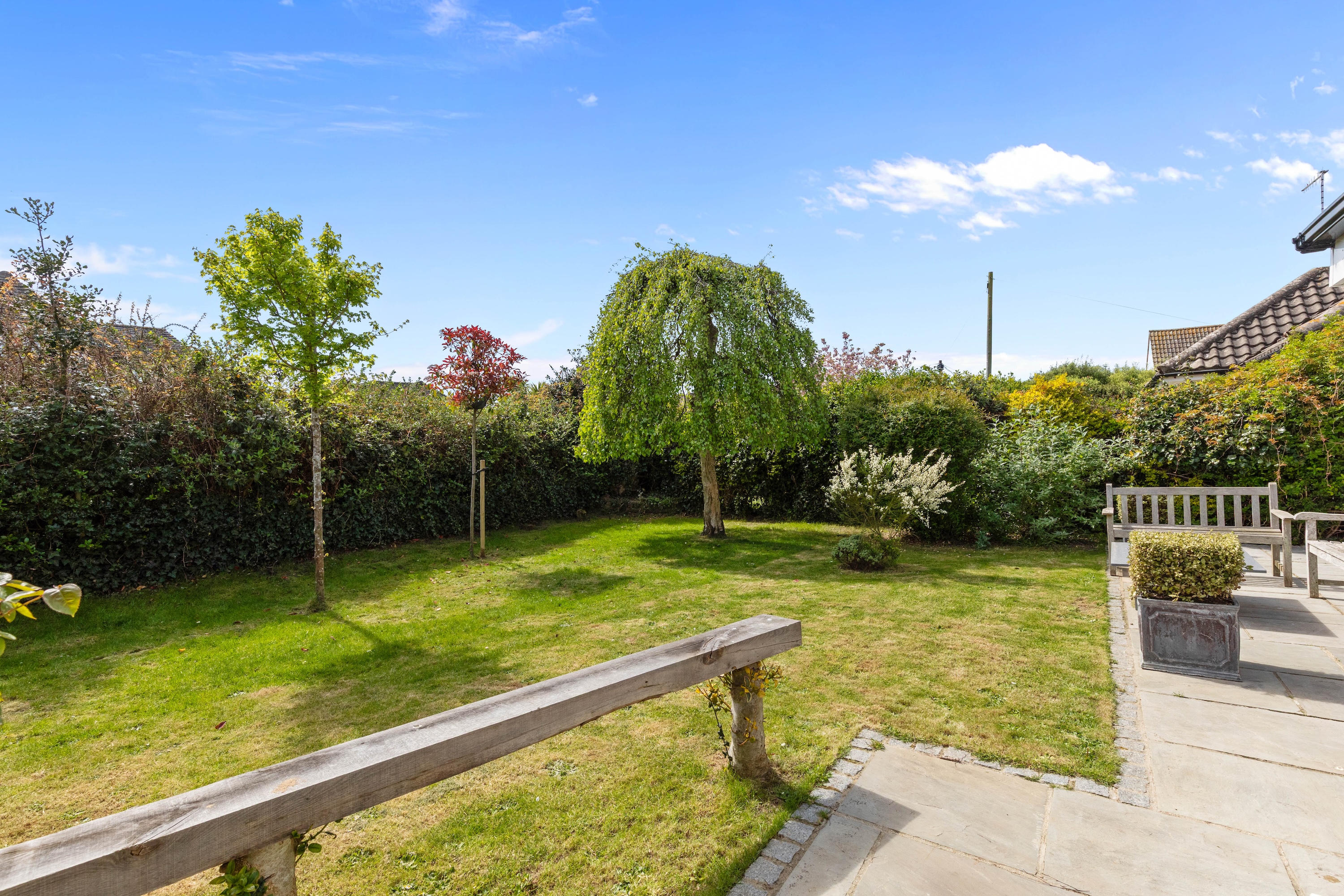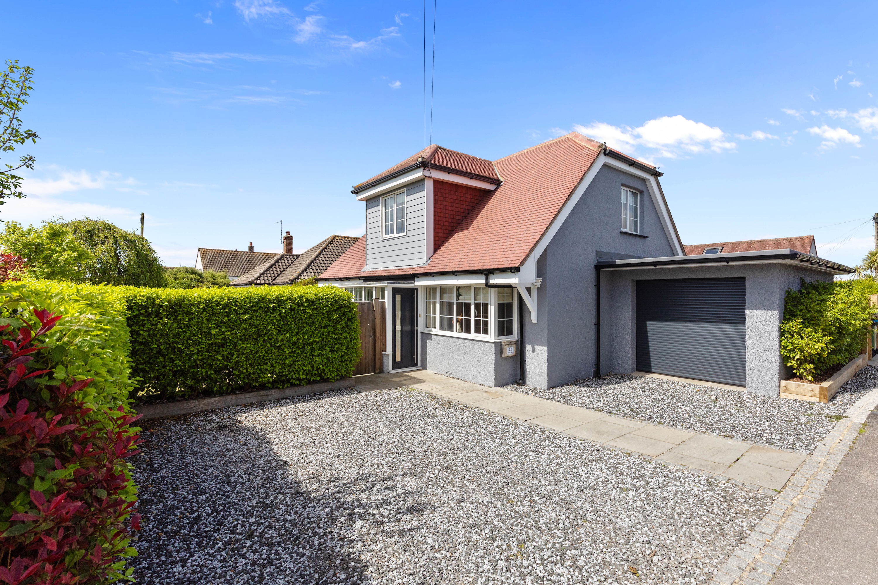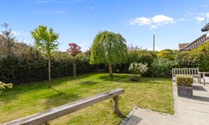 Outside, the gardens wrap around the property, providing many areas to enjoy and relax in. To the front, there is ample parking on the private driveway, which leads to a garage.