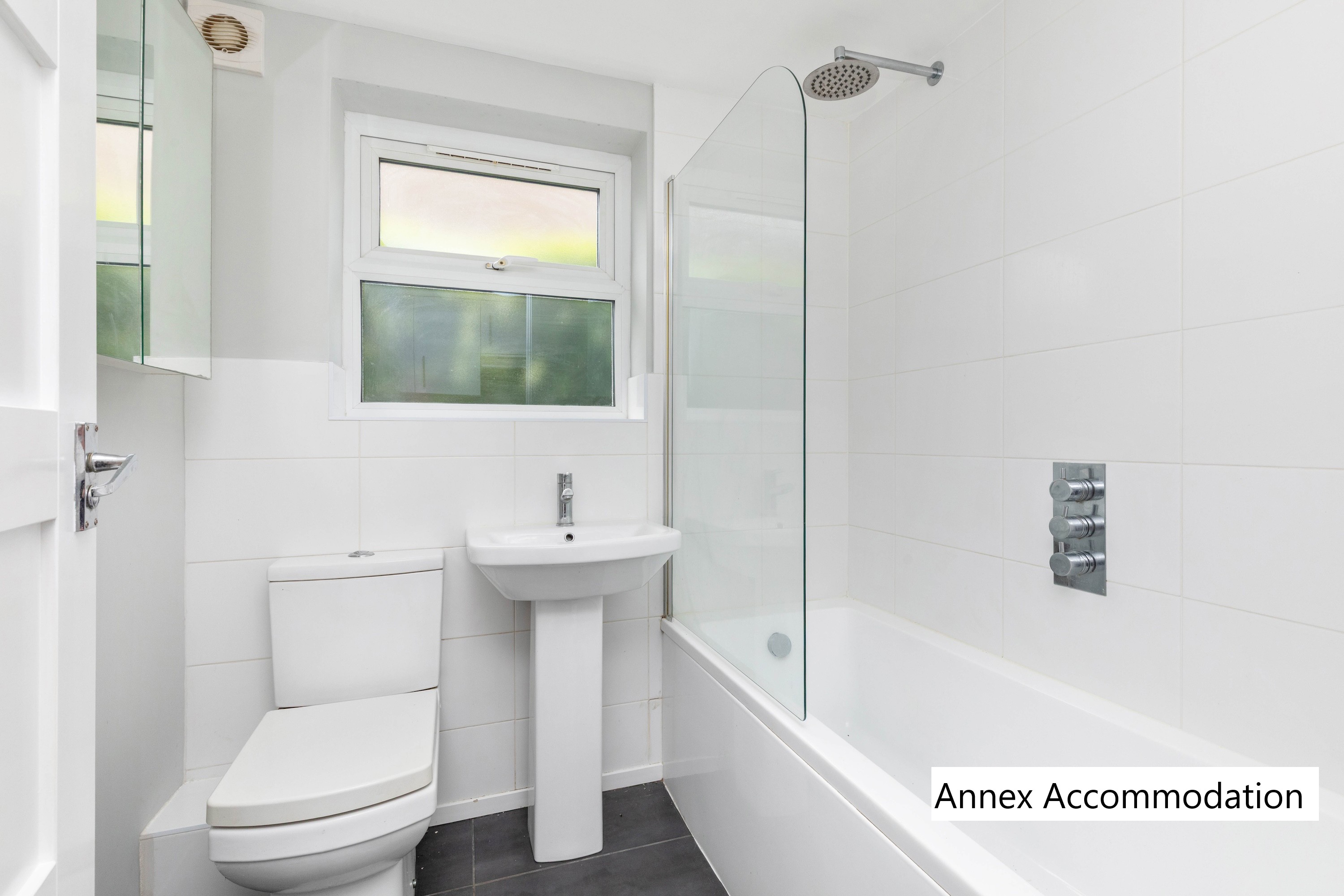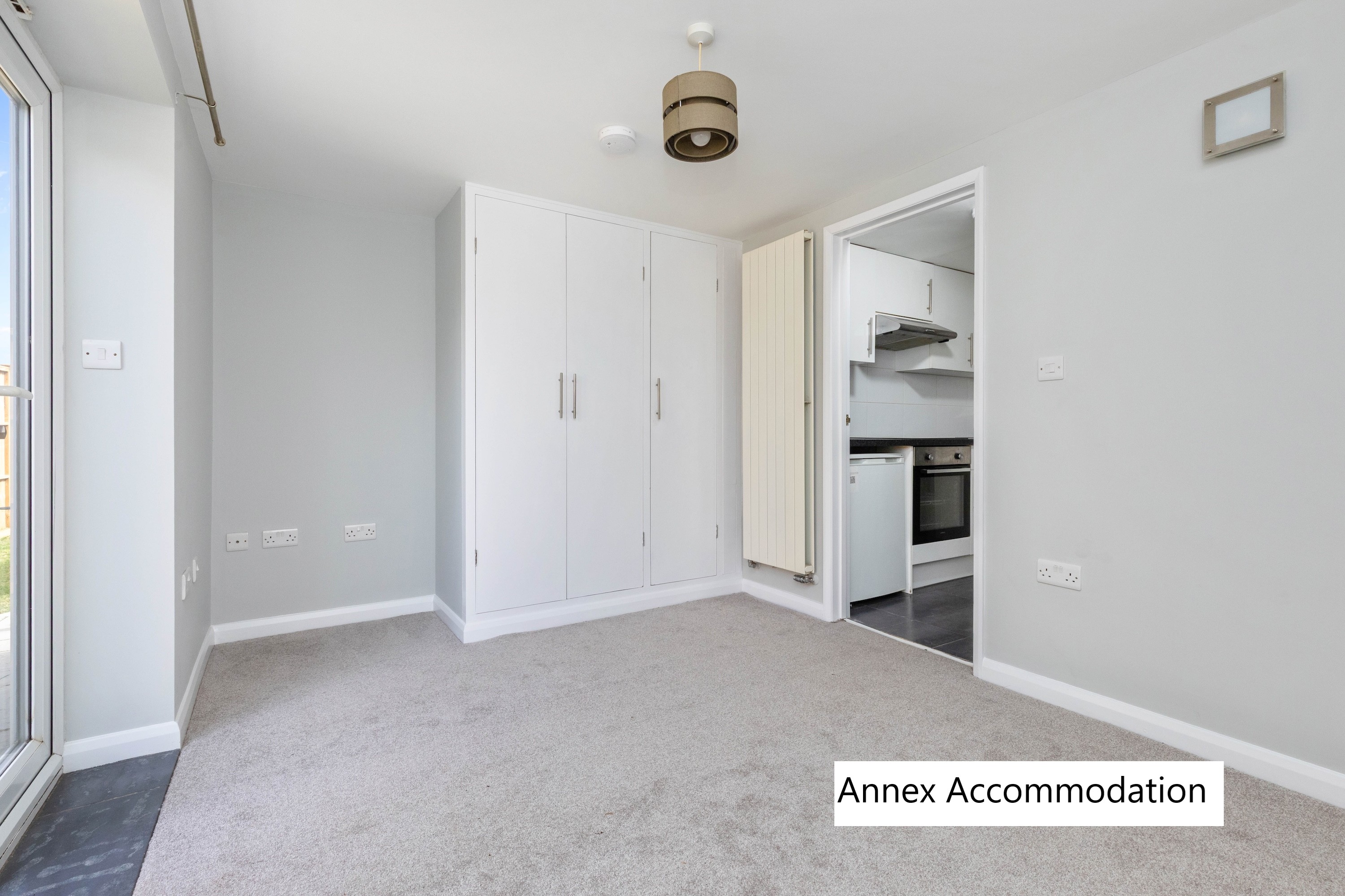 The kitchen/dining room provides the perfect space for gathering, and the kitchen is well equipped with built-in appliances. Completing the ground floor of the main house is a family bathroom.