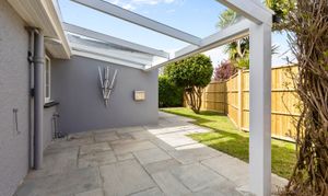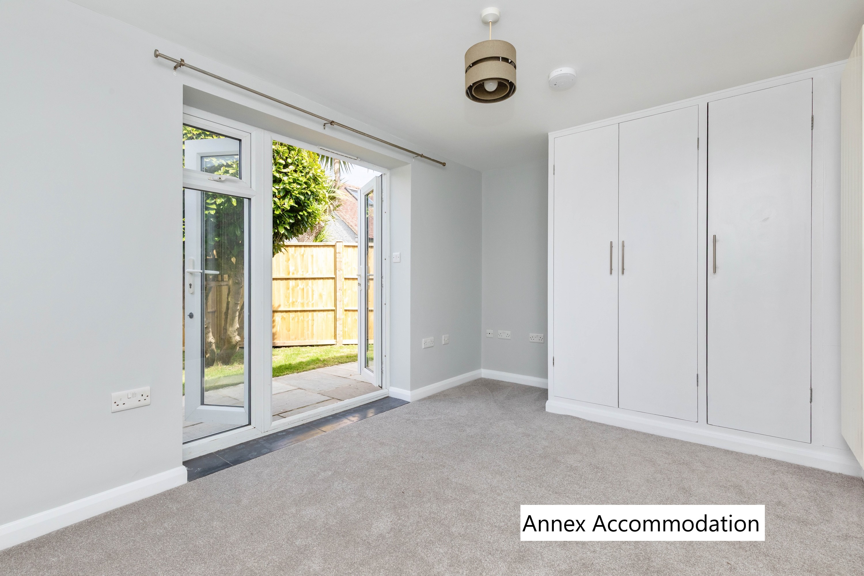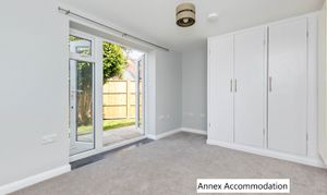 Leading outside, and accessed from a separate entrance, is a one-bedroom annex with its own kitchen and bathroom. (This space could easily be incorporated back into the main house.)