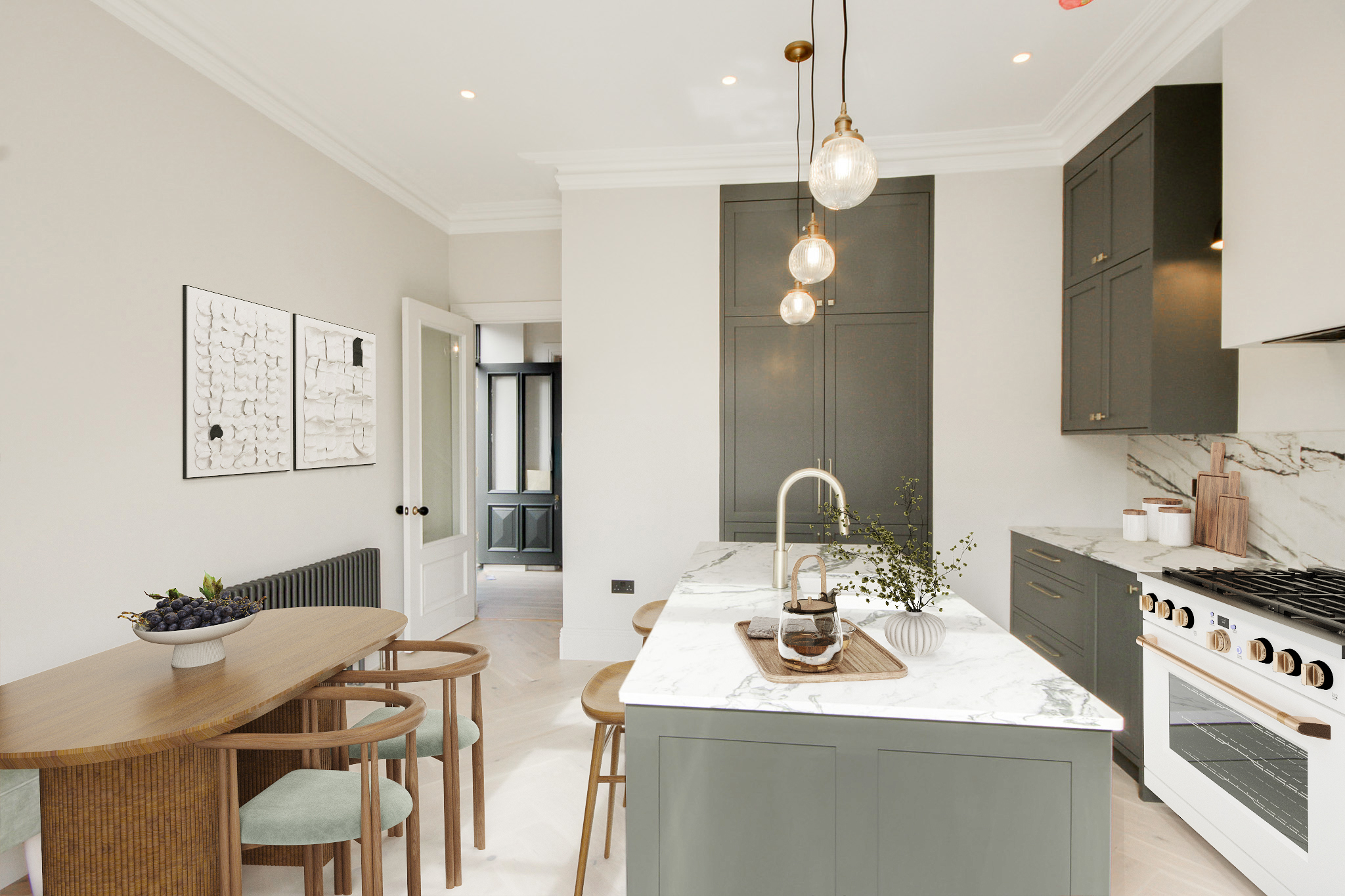The property now benefits from new heating, electrical system, windows, roof, beautiful bathroom and kitchen fittings, floor coverings including Herringbone wood floors, high ceilings and cornice work and landscaped rear garden.