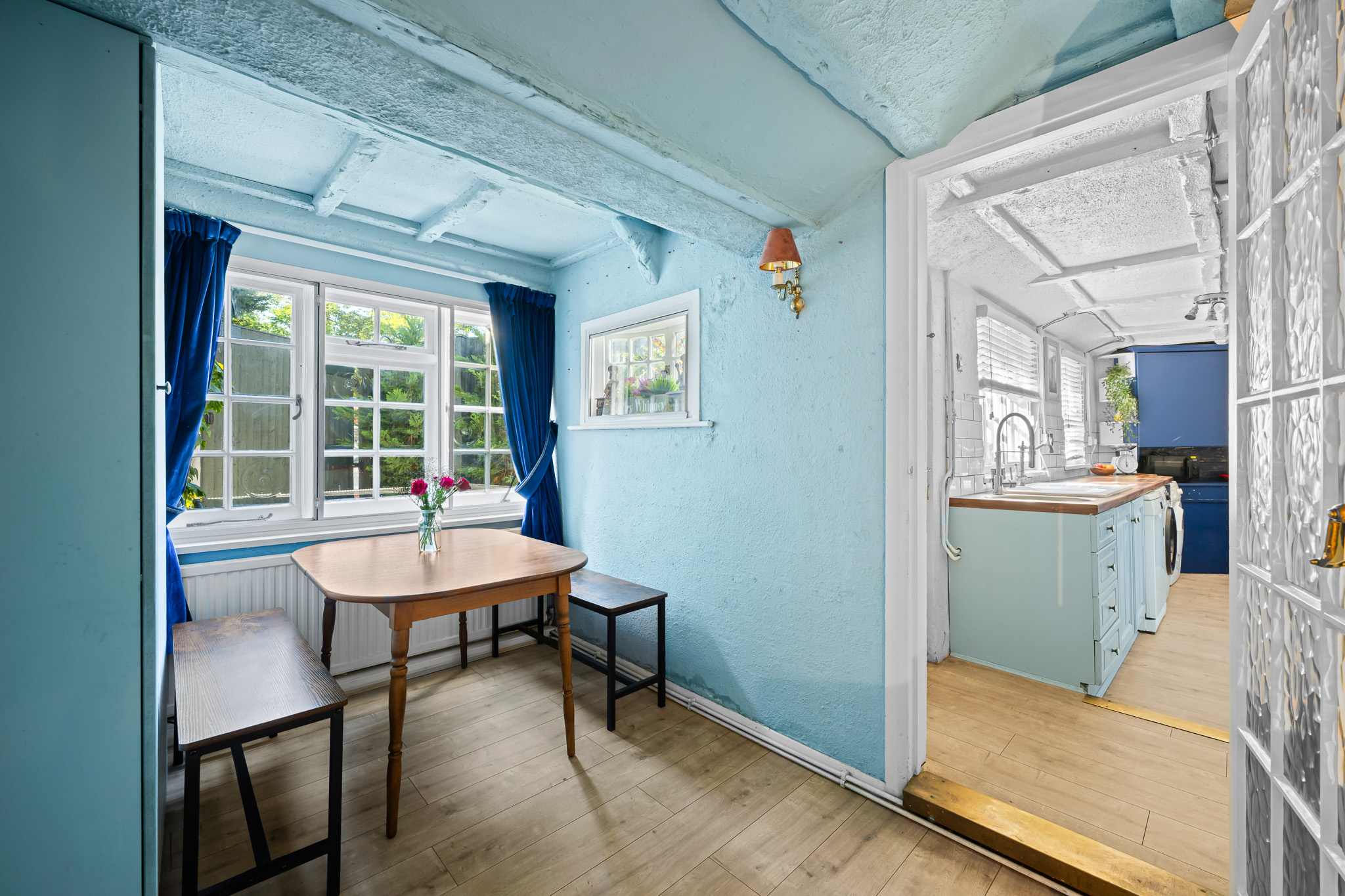 Externally, the garden area is perfect for al fresco entertaining, with a fully insulated out building (currently used as a bar but could easily be repurposed as a summerhouse or home office) with double doors, and additional storage space.