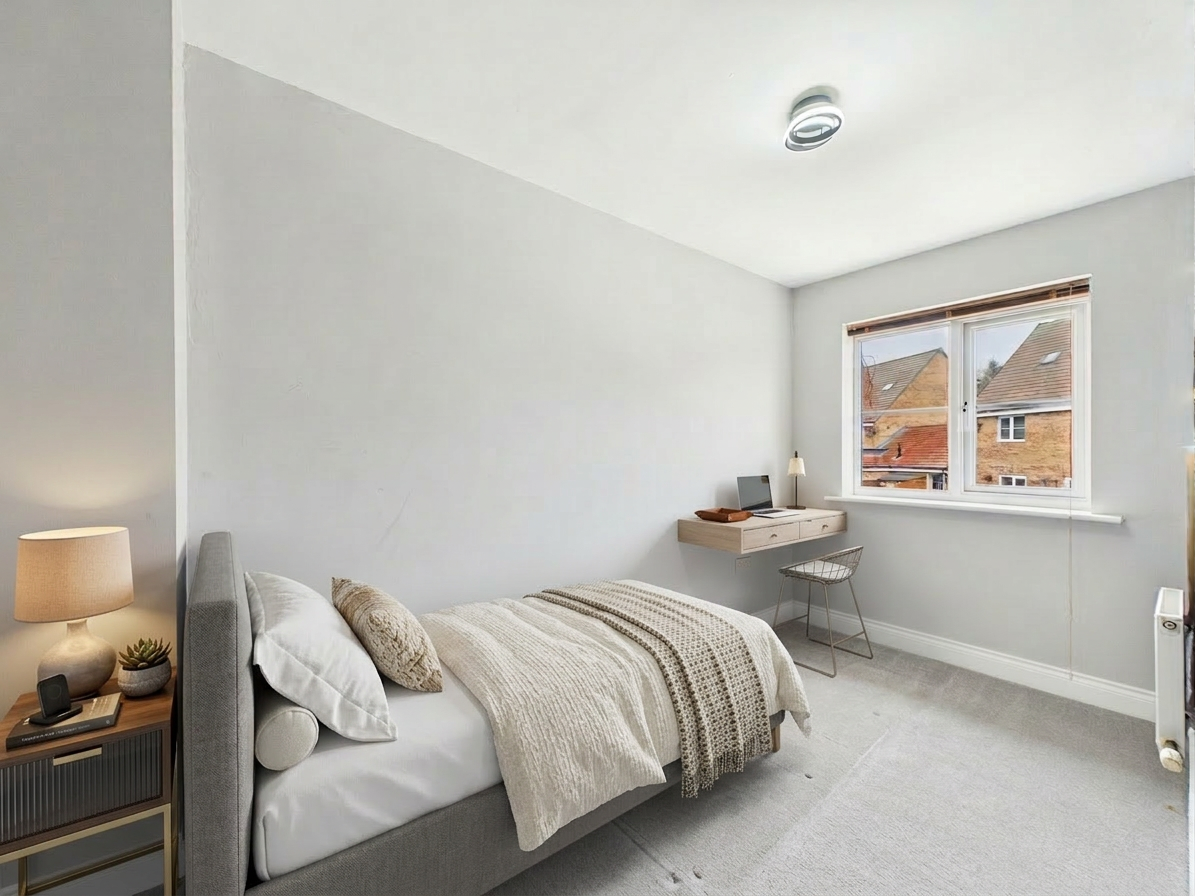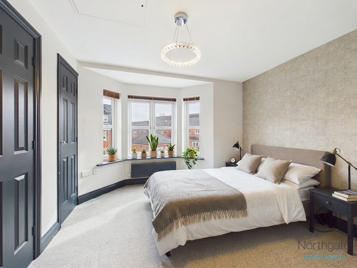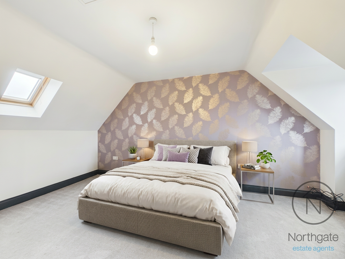 The second floor hosts the principal bedroom, featuring its own en-suite shower room/WC, providing a private and versatile space ideal for a master suite, guests, or older children.