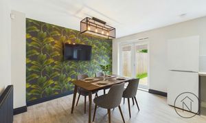The impressive accommodation briefly comprises an entrance hall, cloakroom/WC, elegant living room, and a fitted open-plan kitchen and dining room complete with French doors leading to the rear garden, creating a bright and sociable space for everyday living and entertaining.
