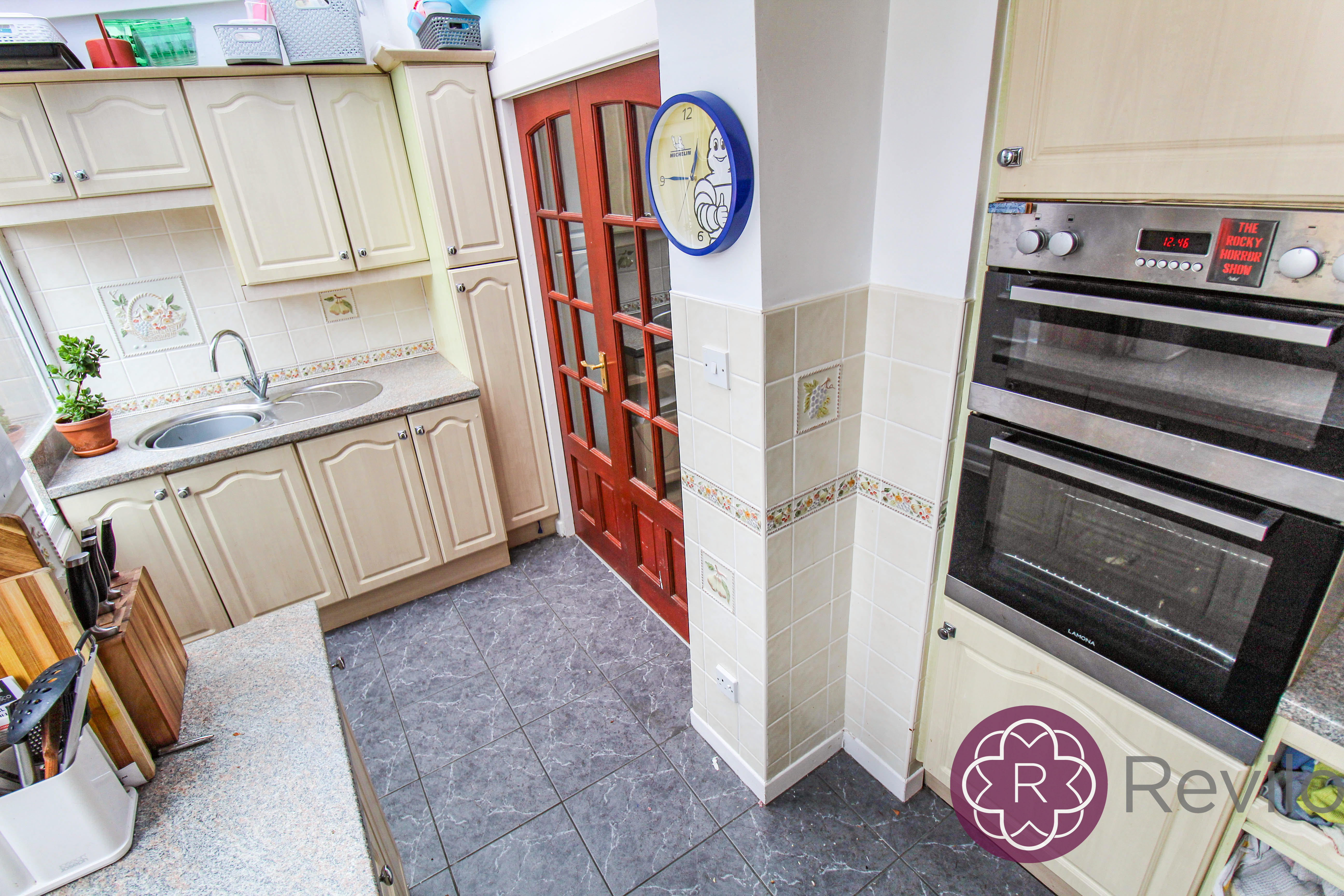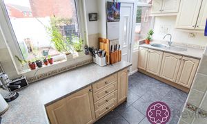 Rear facing double glazed window and door giving access to the private rear courtyard, fitted kitchen with a good selection of wall and base units, complimentary work surfaces, gas hob, extractor, oven, sink & drainer, splash back tiling, plumbed for automatic washing machine, tiled walls and floor.
