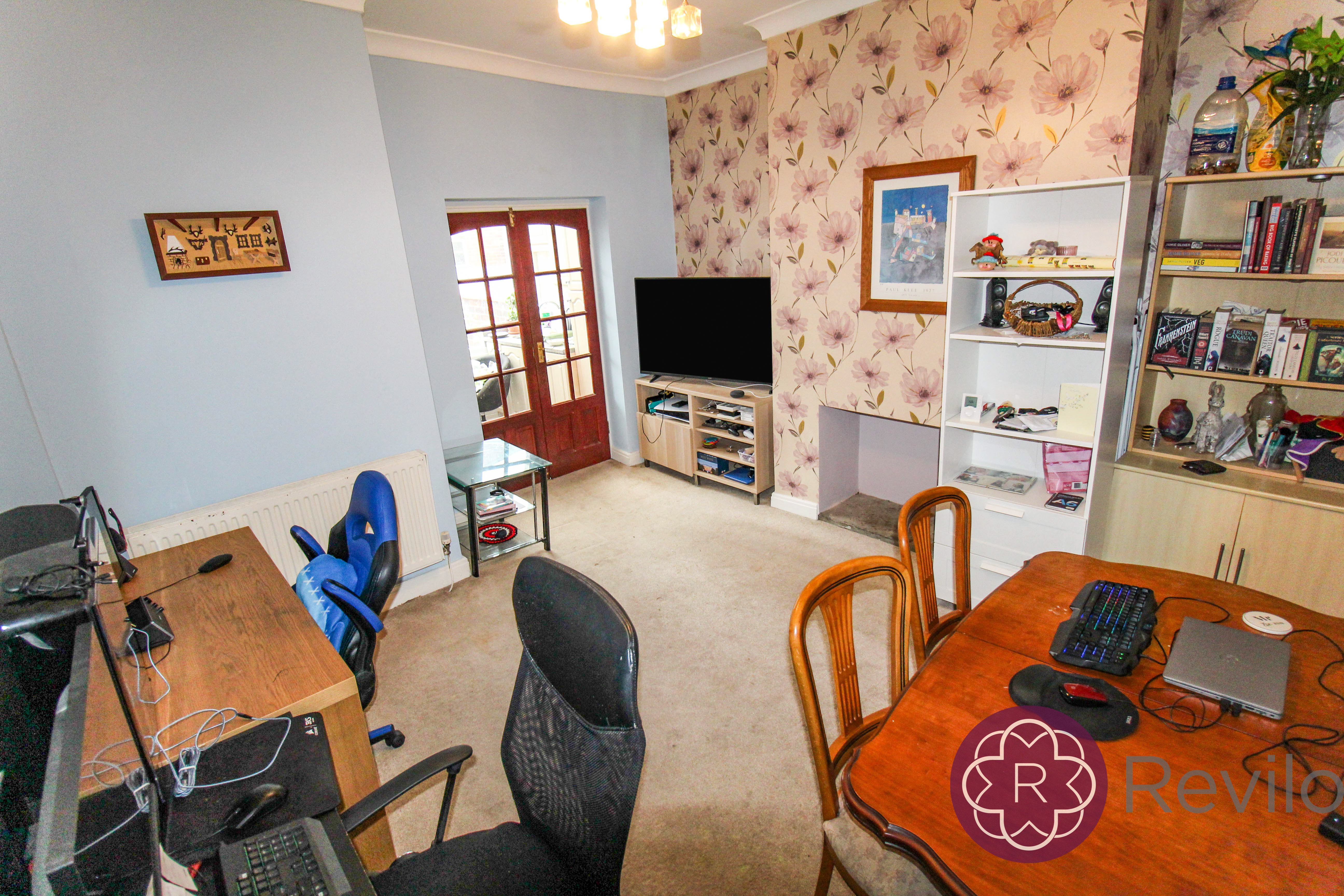 Rear facing internal patio doors giving access to the kitchen, radiator, built in storage.