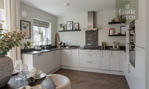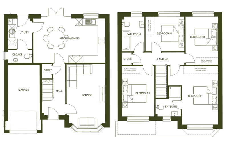 Designed with growing families in mind, this spacious four-bedroom home blends comfort with practicality. At the heart of the home is a generous open-plan kitchen and dining area, with French doors that open onto the garden—ideal for everyday living and entertaining. A separate lounge to the front, framed by a striking bay window, provides a peaceful retreat for quiet moments. A utility room, cloakroom and integrated single garage add valuable storage and everyday convenience. Upstairs, the primary bedroom features its own en-suite for added privacy, while three further double bedrooms and a modern family bathroom ensure there’s plenty of space for everyone.