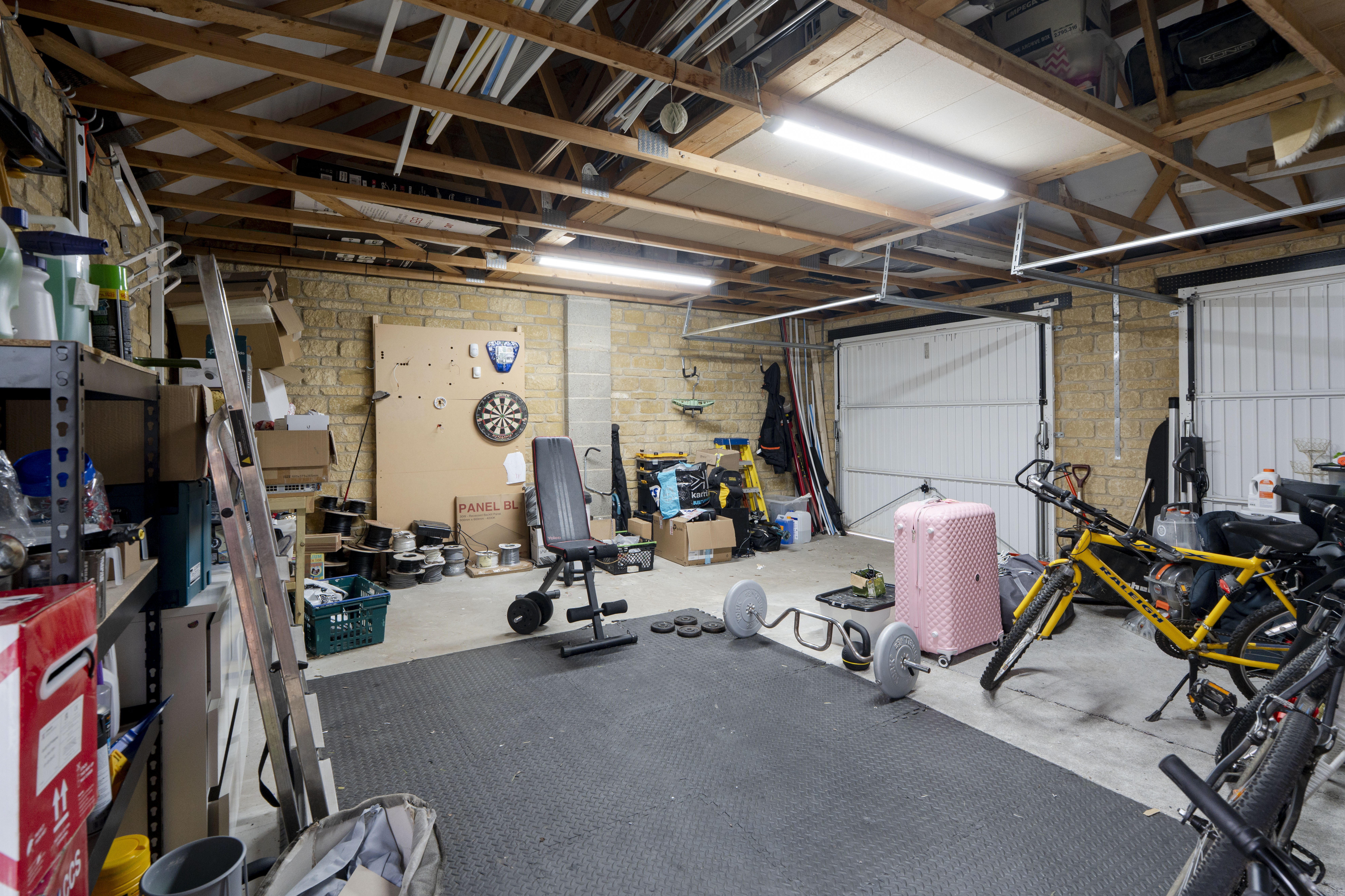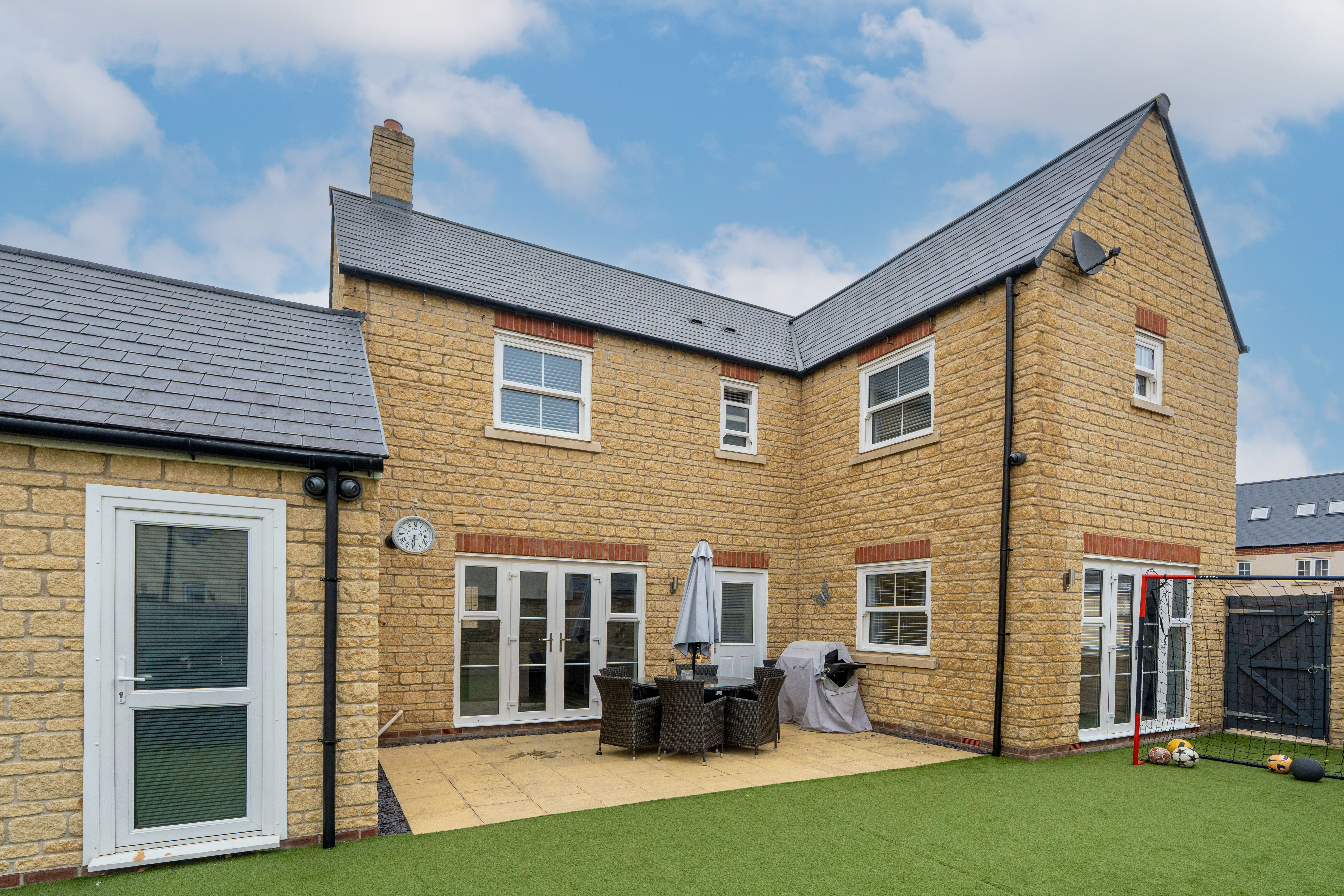 - Low-Maintenance Garden & Double Garage – Generous outdoor space with artificial lawn, paved patio, and a double garage suitable for a gym or workshop, and driveway parking.