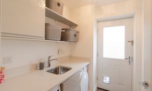 The heart of the home is the stunning open-plan kitchen/dining room, complete with a generous central island, direct access to the private rear garden. Ideal for both casual dining and family gatherings, the kitchen is complemented by a separate utility room, while a dedicated study provides a peaceful space for working from home or quiet relaxation. A cloakroom and WC complete the ground floor.