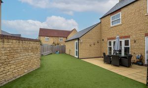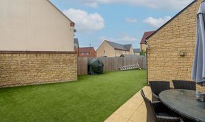 Outside, the property features a double garage—perfect for use as a home gym or workshop, with off-road secure parking—and a large, low-maintenance rear garden laid mainly with artificial lawn. The generous patio area is ideal for al fresco dining and summer entertaining, while gated rear access adds a further level of privacy and convenience.