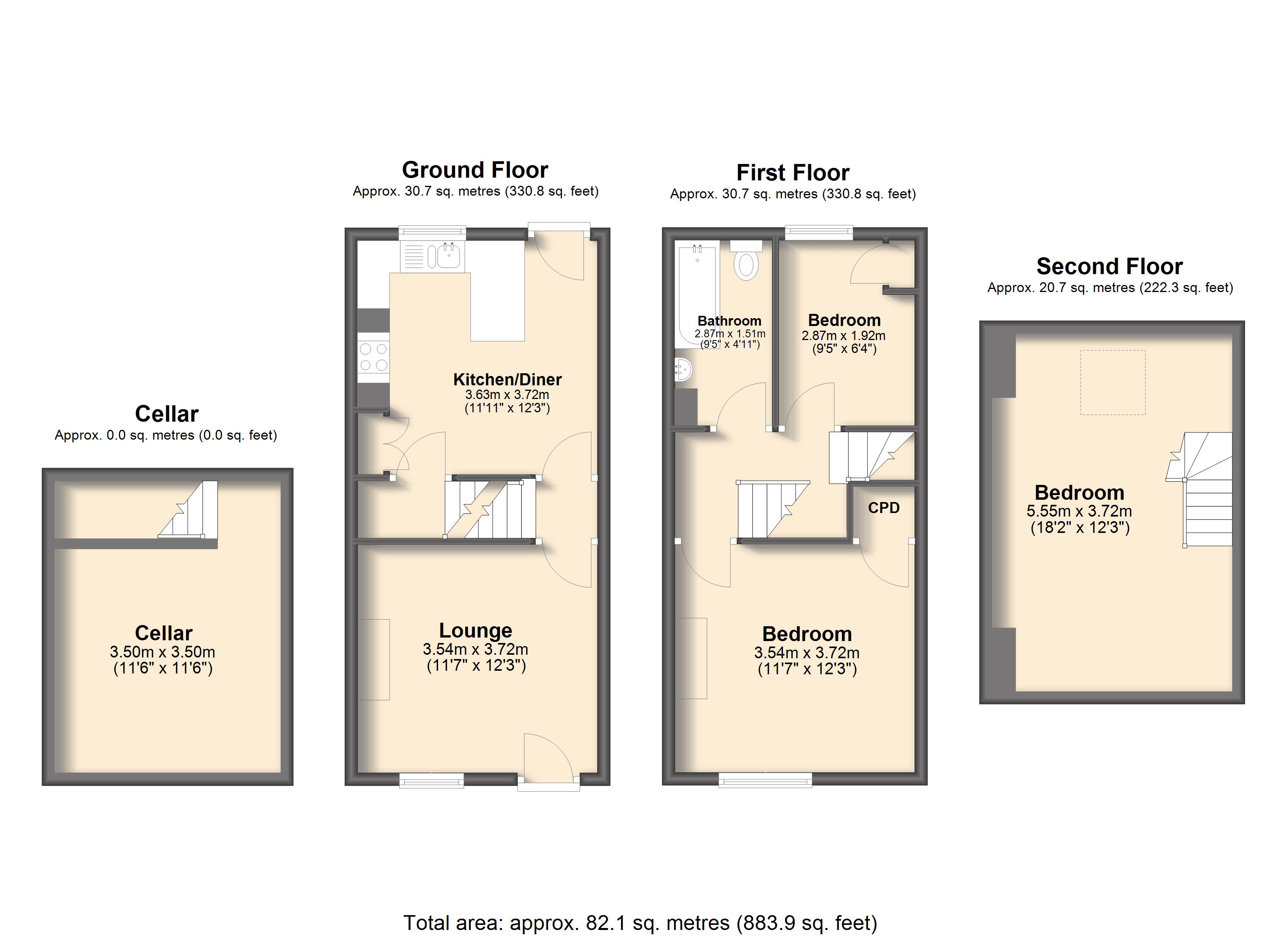 - Approx Sq Feet: 883 sqft