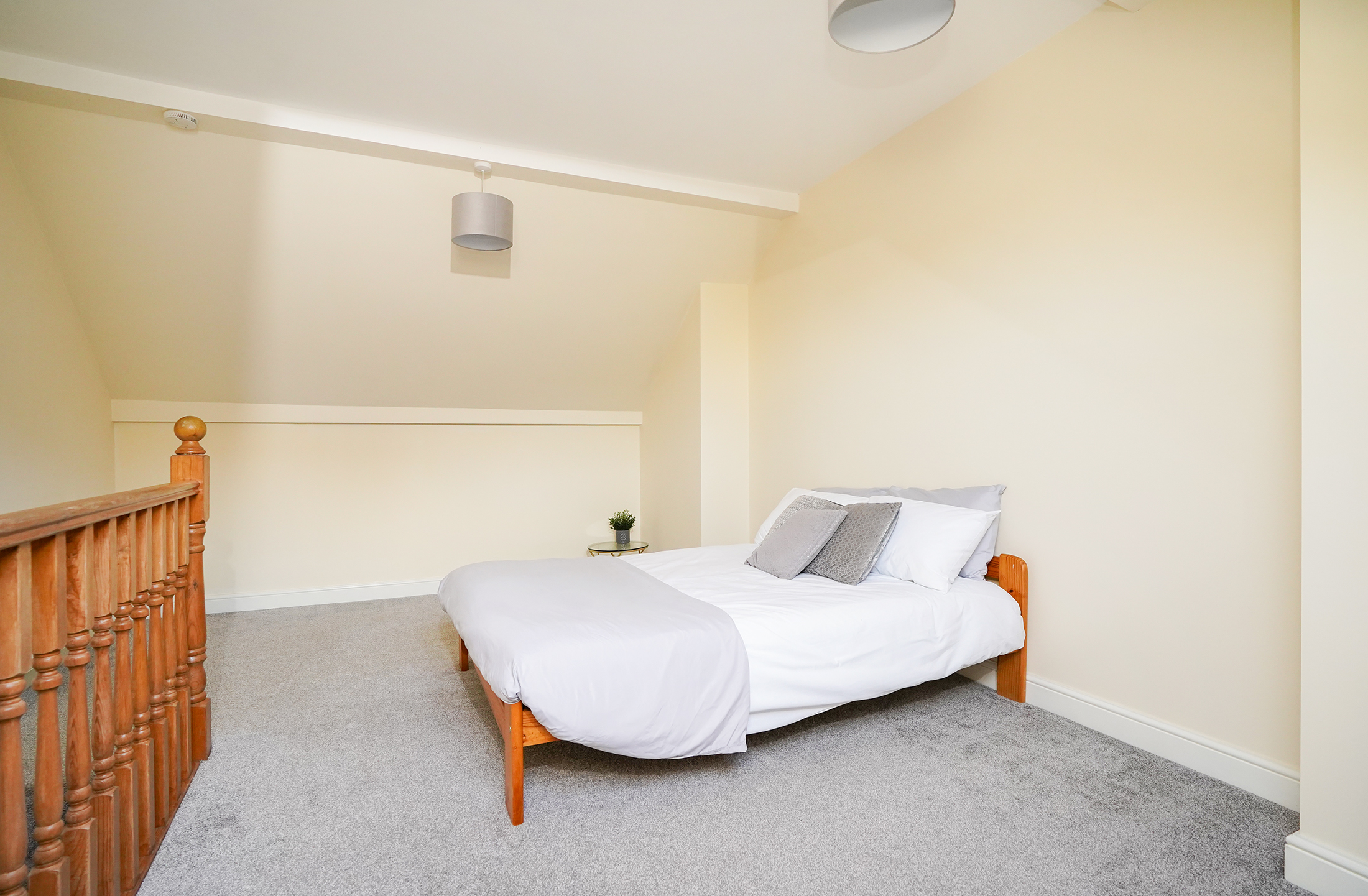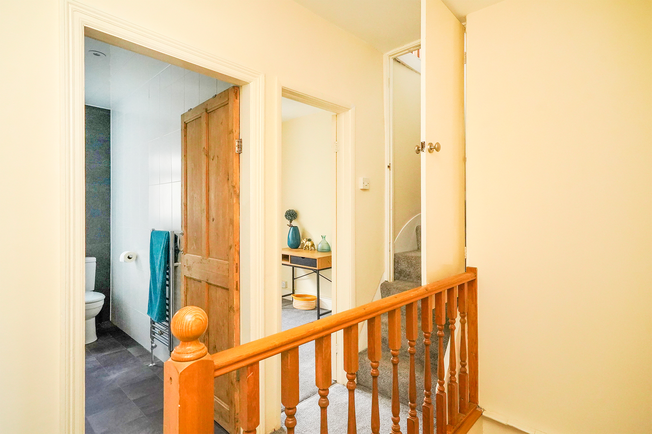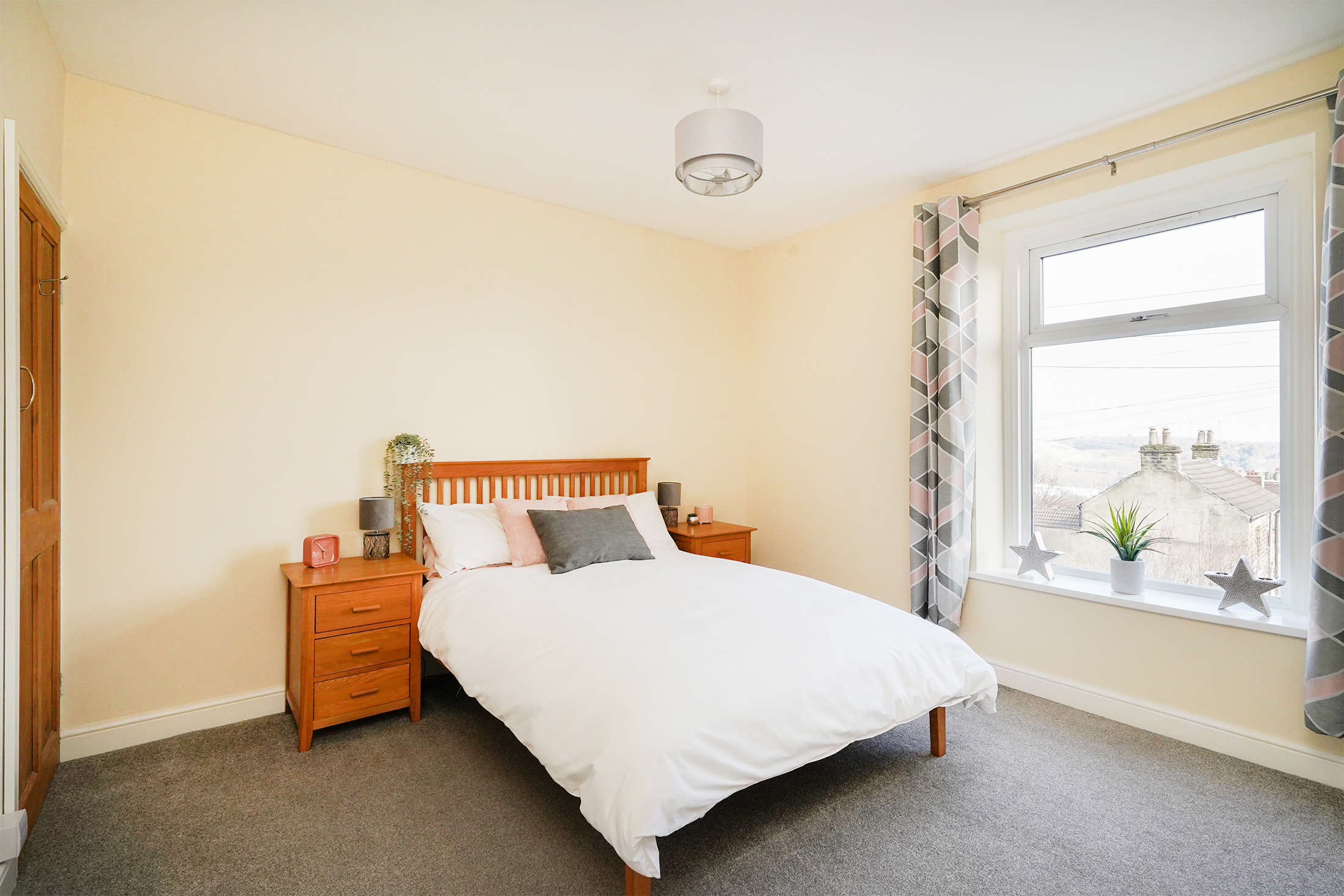 Upstairs, the first floor hosts a principal bedroom with built-in storage and fabulous views across the city, alongside a well-proportioned single bedroom that could also serve as a home office or nursery. The family bathroom is finished with a modern three-piece suite, offering both style and functionality. Moving to the second floor, you have the second double bedroom, which offers plenty of space for fitted or stand-alone furniture.