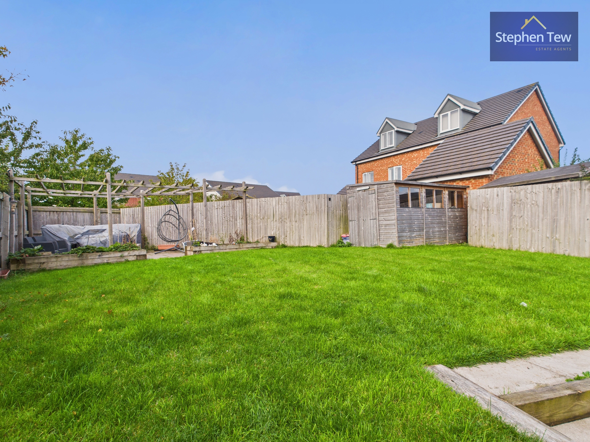 Upstairs, the master bedroom stands as a luxurious retreat, complete with an en-suite bathroom for added privacy and convenience. Three additional bedrooms provide comfort and flexibility, ideal for accommodating family members or transforming into a home office or hobby space. Outside, the property shines with its large rear garden, offering a serene oasis for outdoor activities and al fresco dining. Situated within close proximity to local amenities, transport links, and the motorway, this exceptional residence offers convenience and connectivity for modern living.