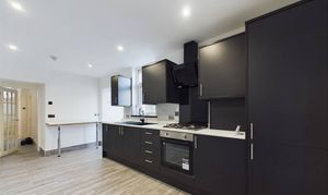 Leading off from the lounge. Laminate flooring, radiator and flushed ceiling spotlights. Door leading on to access the kitchen.