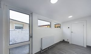 Leading off from the kitchen. Tiled floor, radiator, flushed ceiling lights, plumbing and electric points. UPVC door leading on to access the garden.