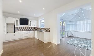 This beautifully presented three bedroom, one bathroom semi-detached house offers a perfect blend of modern living and classic charm. The property features two well-proportioned reception rooms, one of which opens into a contemporary open plan kitchen dining area. The kitchen boasts sleek white units, stylish checkered and tiled backsplashes, and flooring. Ample natural light floods the interiors through large windows and French doors, creating bright, inviting spaces throughout. The layout extends seamlessly into a bright conservatory, which provides direct access to the spacious, fenced rear garden - ideal for indoor-outdoor living and family gatherings.