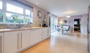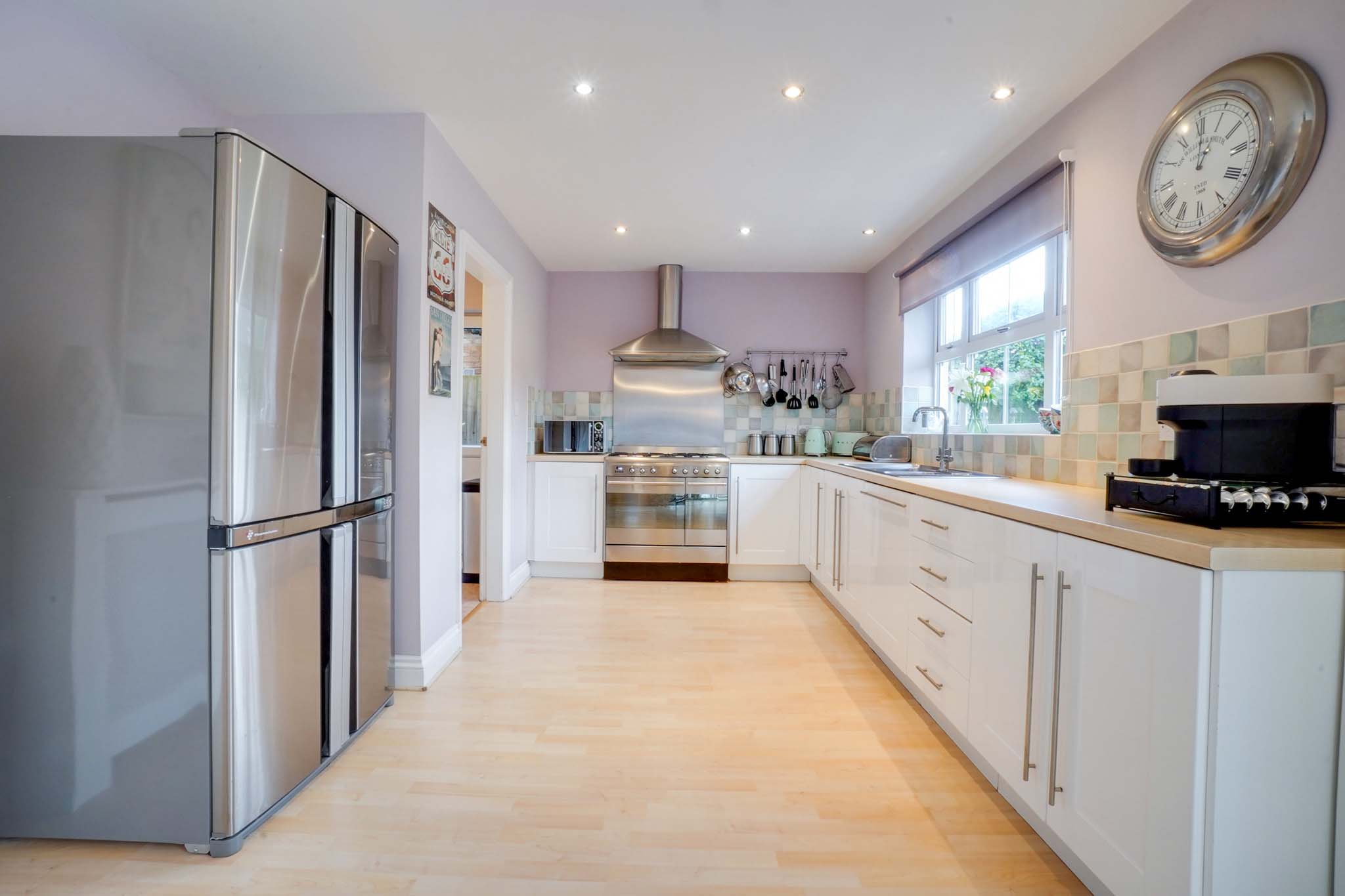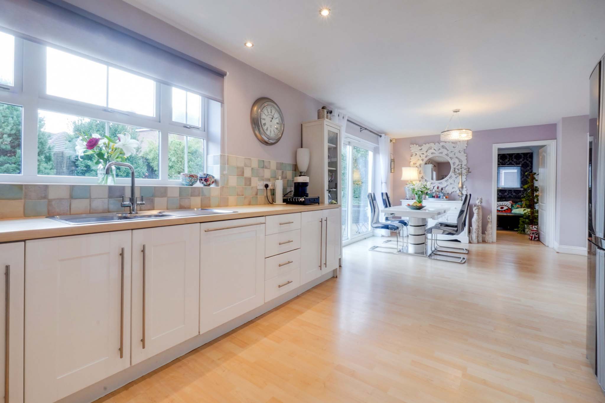 With double glazed sliding patio doors to the rear elevation, double glazed window to the rear elevation, laminate floor, base units, part tiled walls, stainless steel one and a half bowl stainless steel sink and drainer unit, space for range style gas cooker, extractor hood, radiator.