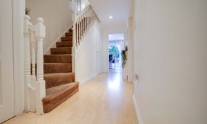 With built-in storage cupboard, laminate floor, stairs to first floor, radiator.