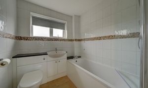 Upstairs, the property offers a master bedroom with fitted wardrobes and a third single bedroom to the front. To the rear, there is a further double bedroom and a bathroom with white suite and shower over bath.