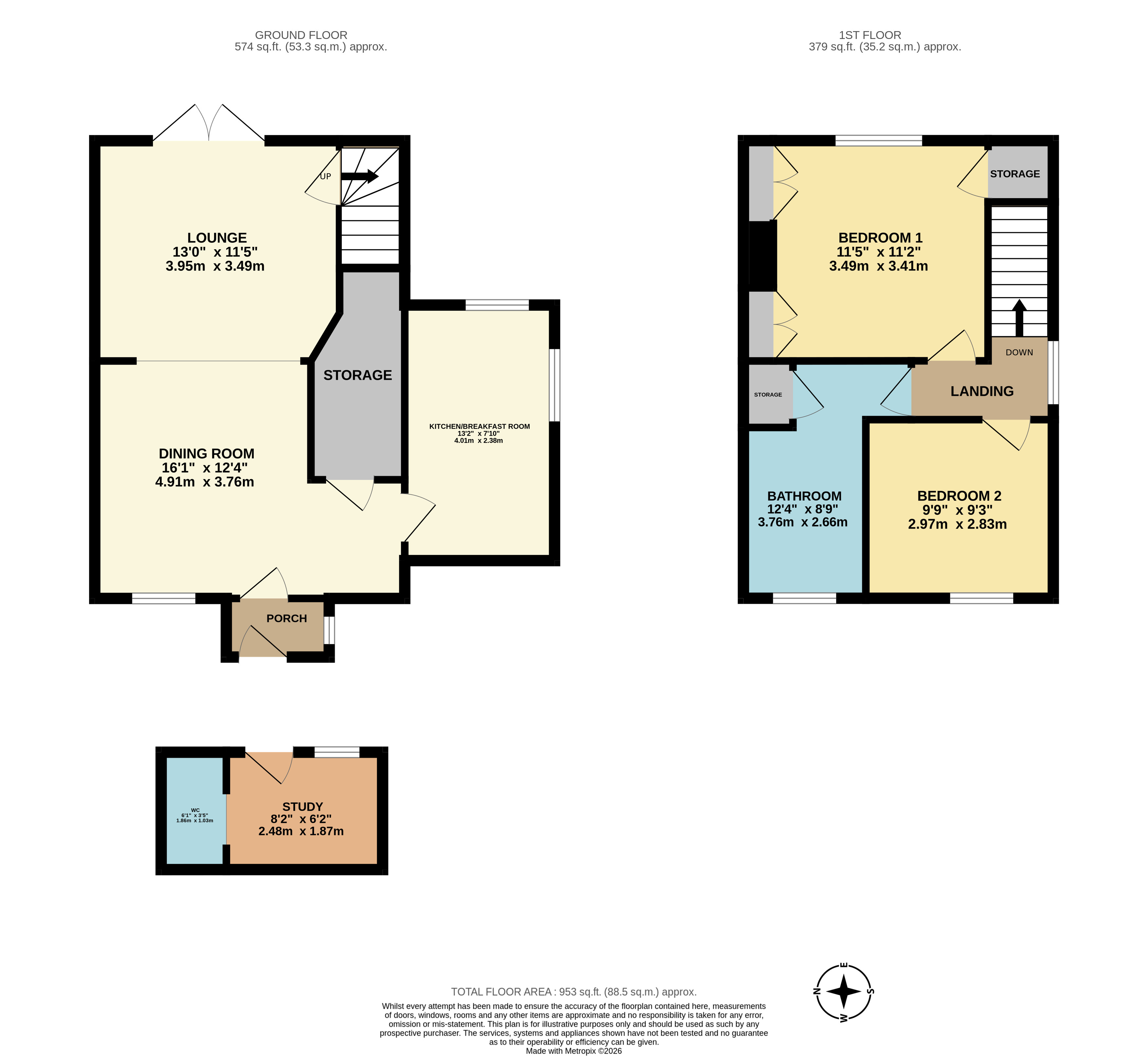 The converted outbuilding provides a great opportunity to be a separate office space with tiled flooring and lighting along with access to a separate WC.