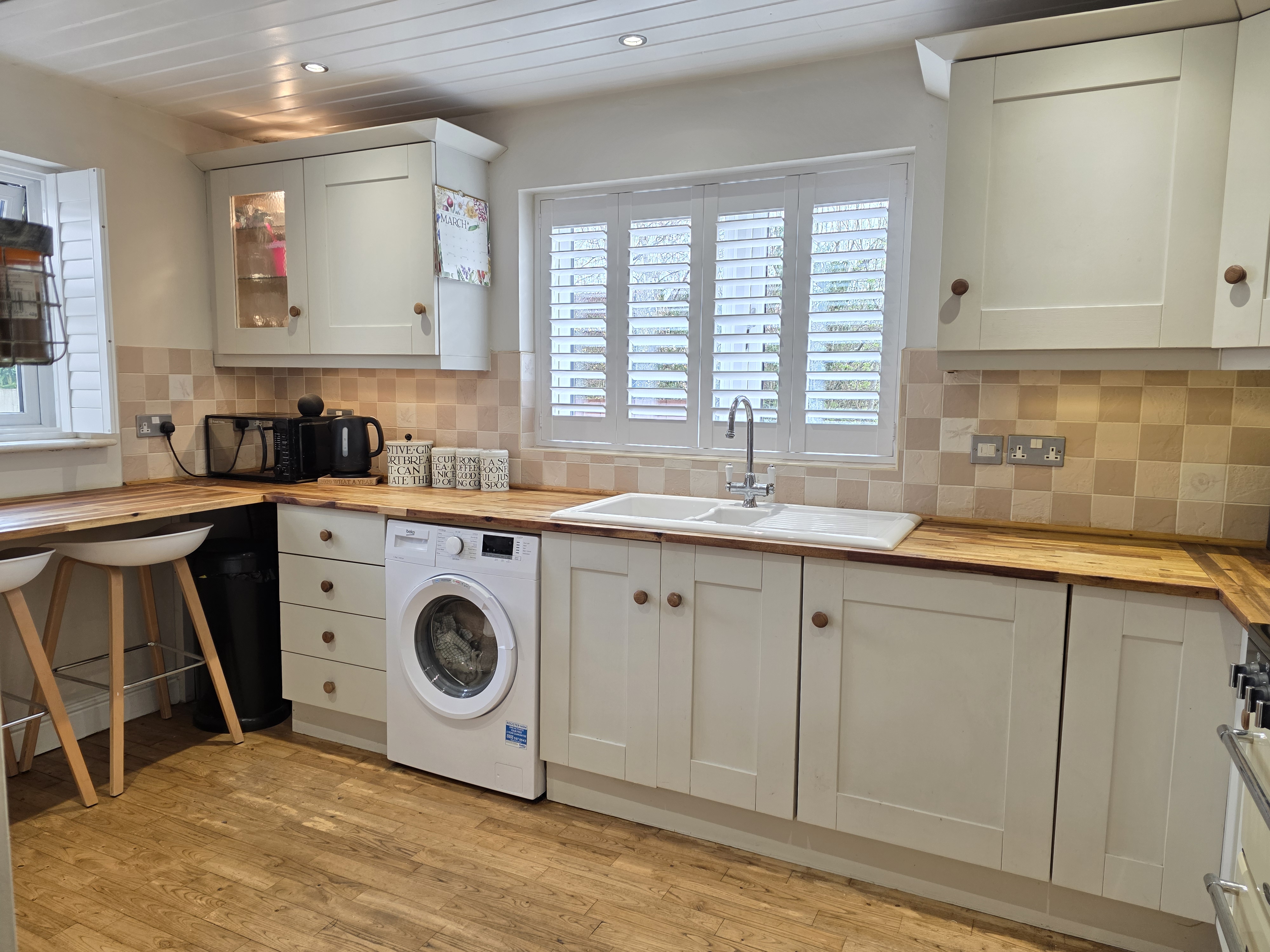 Within the extension is the breakfast kitchen, this includes a range of wall, base and drawer units with worktop over, space and plumbing for a washing machine, breakfast bag, ceramic one and half sink and drainer with mixer tap, tiled splashbacks, electric range cooker with extractor over, spotlighting, radiator, fitted venetian blinds and two UPVC double glazed window.