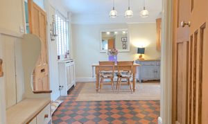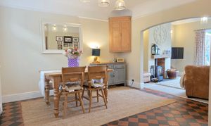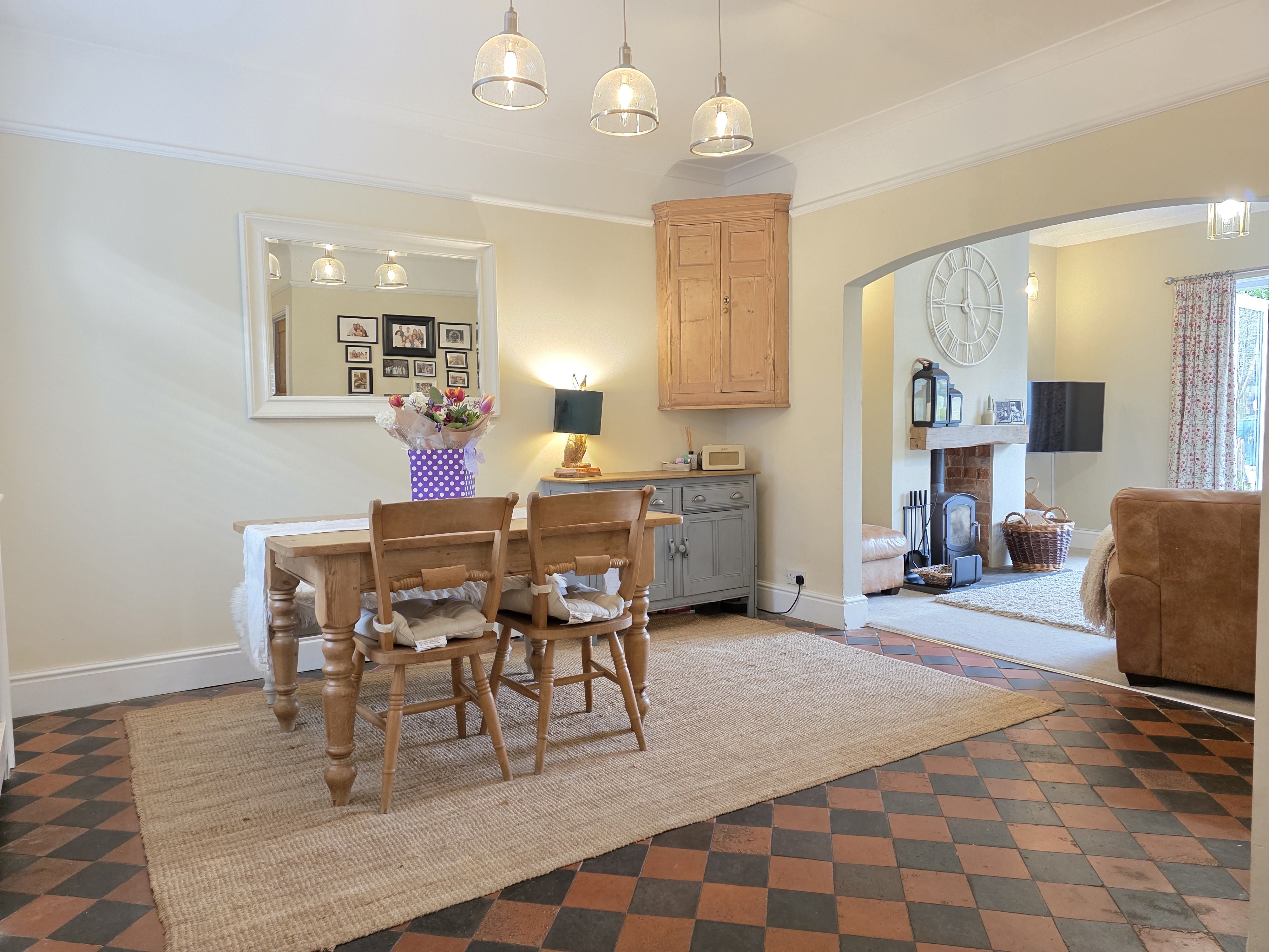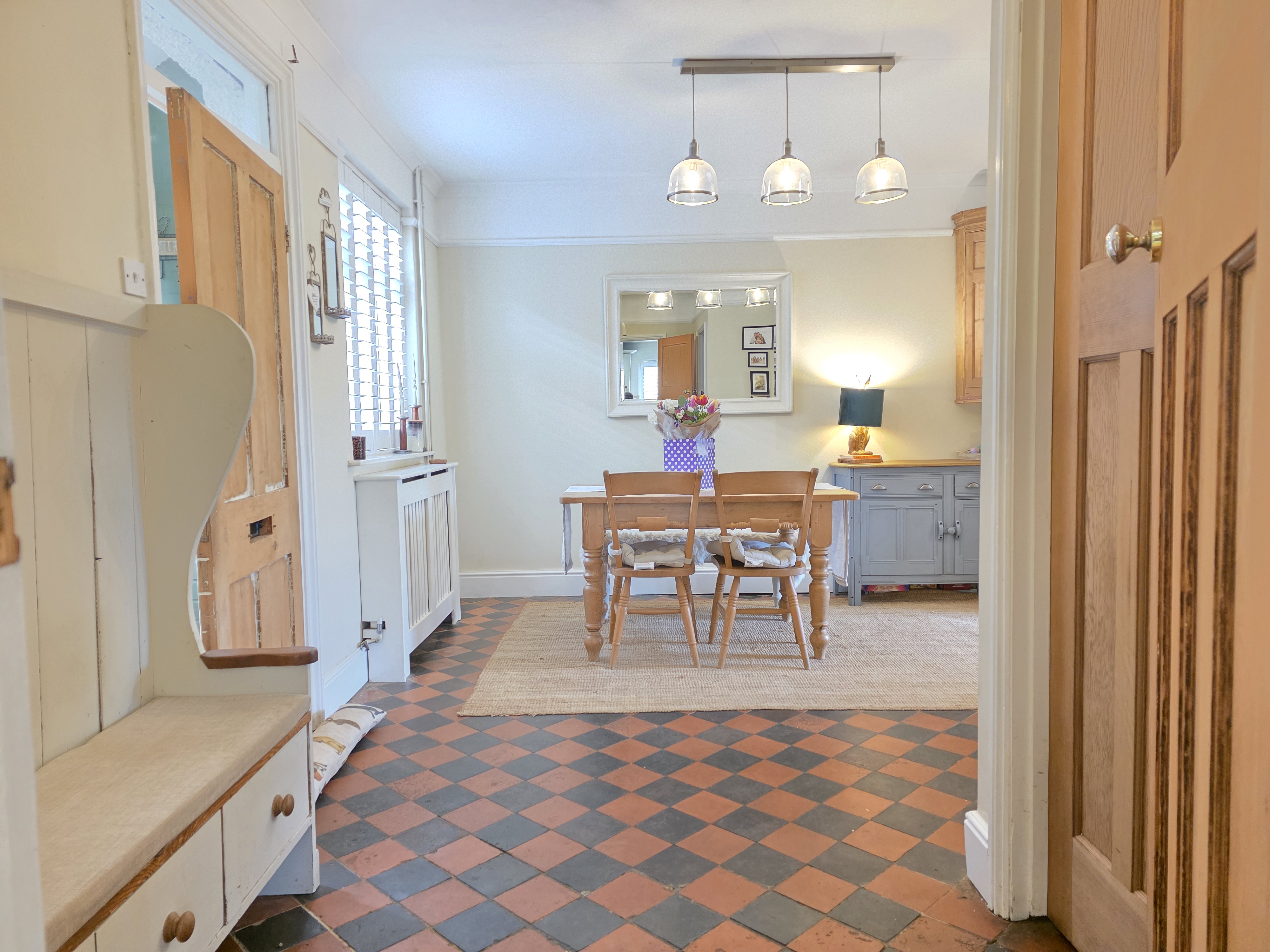 The dining room benefits from the original tiled flooring, under-stair storage, radiator, picture rails, coving to ceiling, fitted venetian blinds, UPVC inset double glazed window and plenty of space for a dining table and chairs.