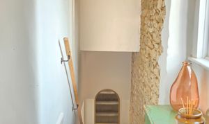 To the rear, there is a mature and private garden with a small lawn, shrub borders, walled and fenced boundaries, patio area and cold water tap.