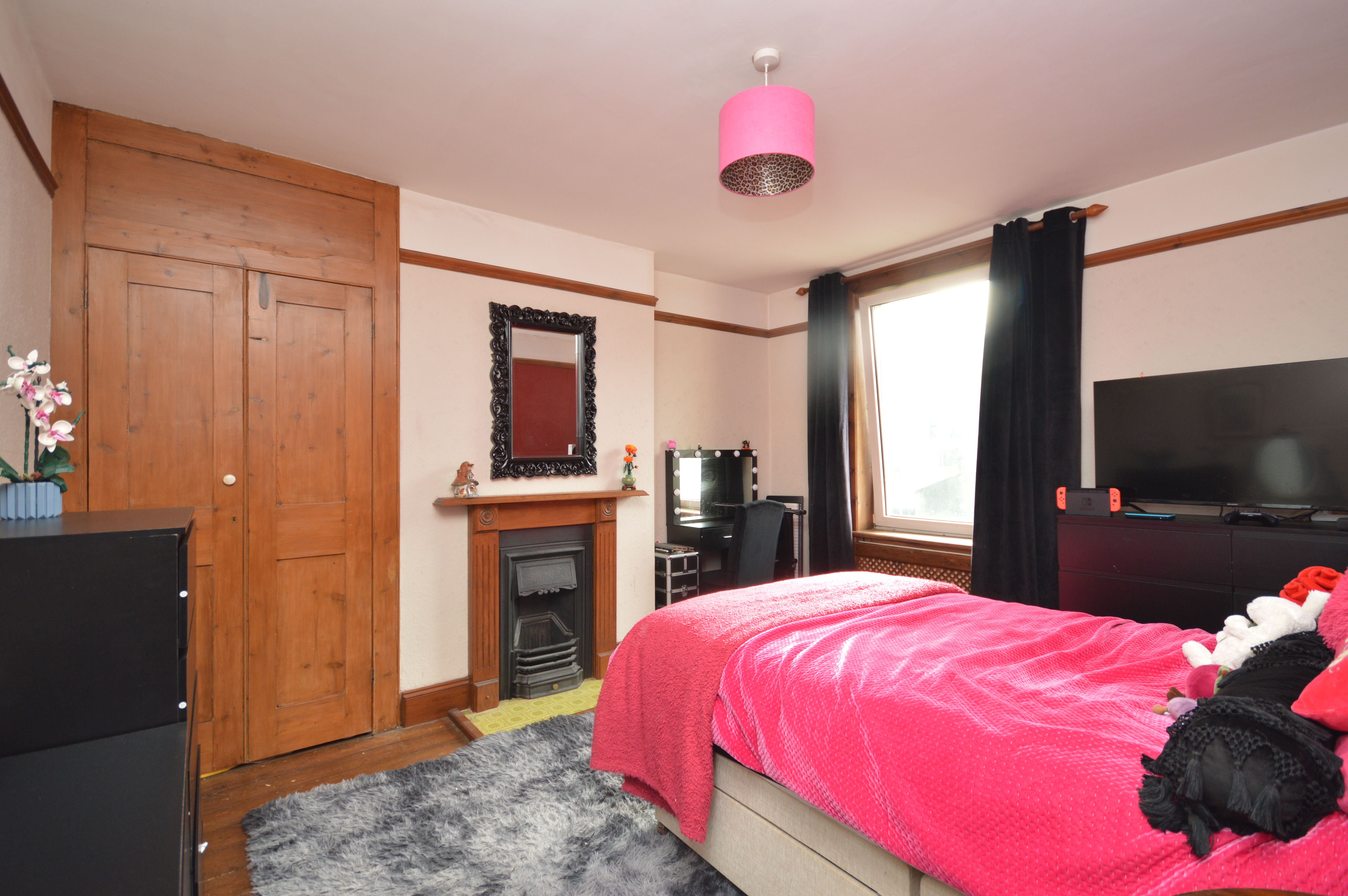 Large UPVC double glazed window overlooking the garden. Beautiful original floorboards, picture rail, high skirting, original fireplace and a radiator.