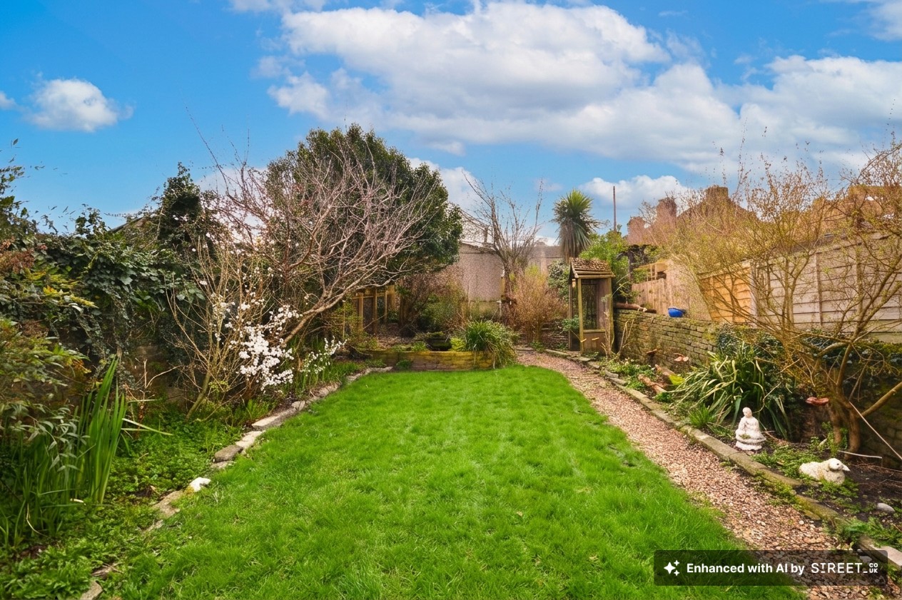 Newly restored front garden with pathway leading down to front entrance porch. Garden has been lovingly restored and renovated with pebble shingle with full mesh weed protection. (Potential for more off-road parking subject to local planning application)
