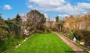 Hard standing area ideal for patio table and chairs. Pebble path leading down the garden, area laid to lawn, well established shrubs on both sides of the garden. Pond area with steps leading up to the garage, rear gated access and side gate access to the property also. Both gates are new.