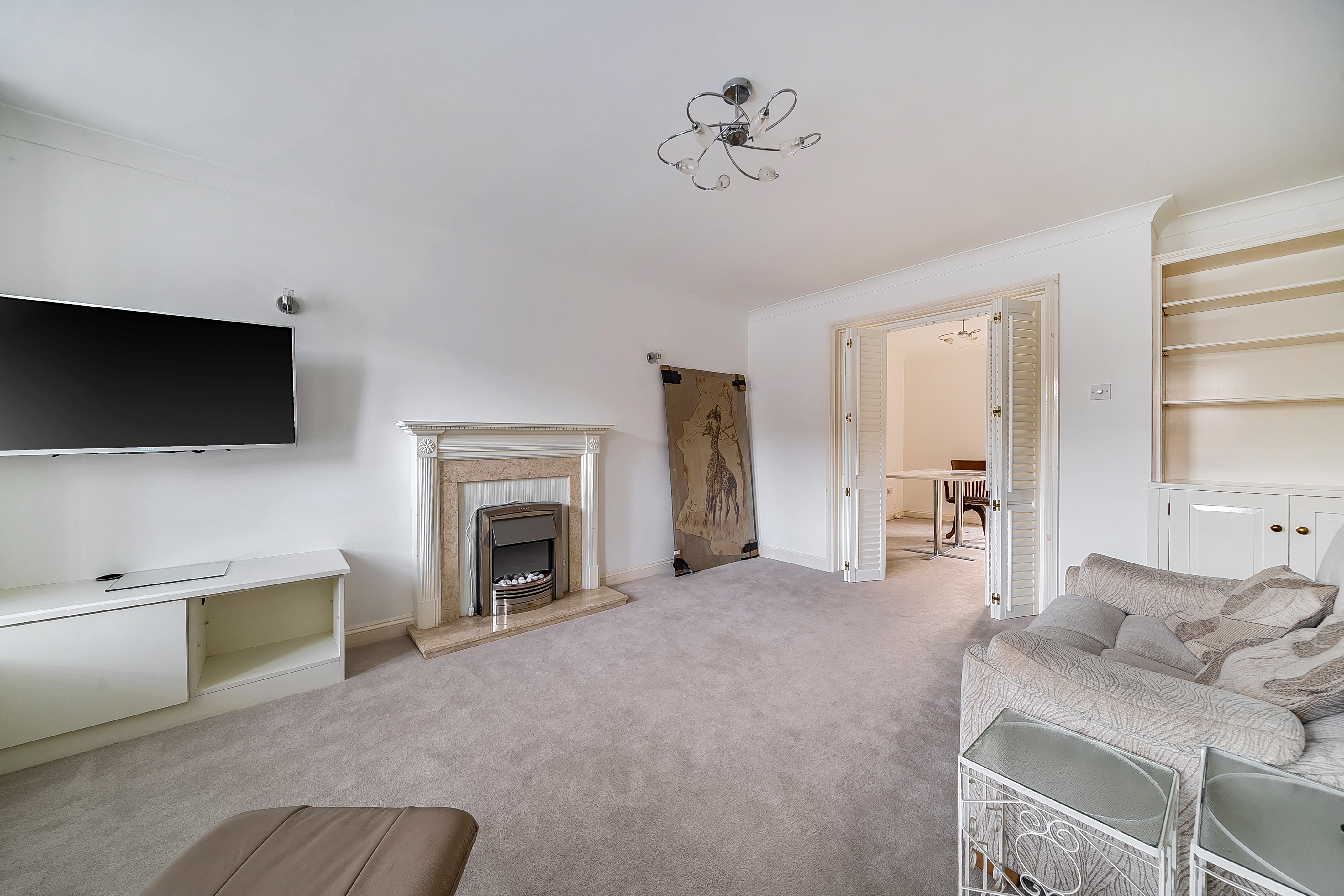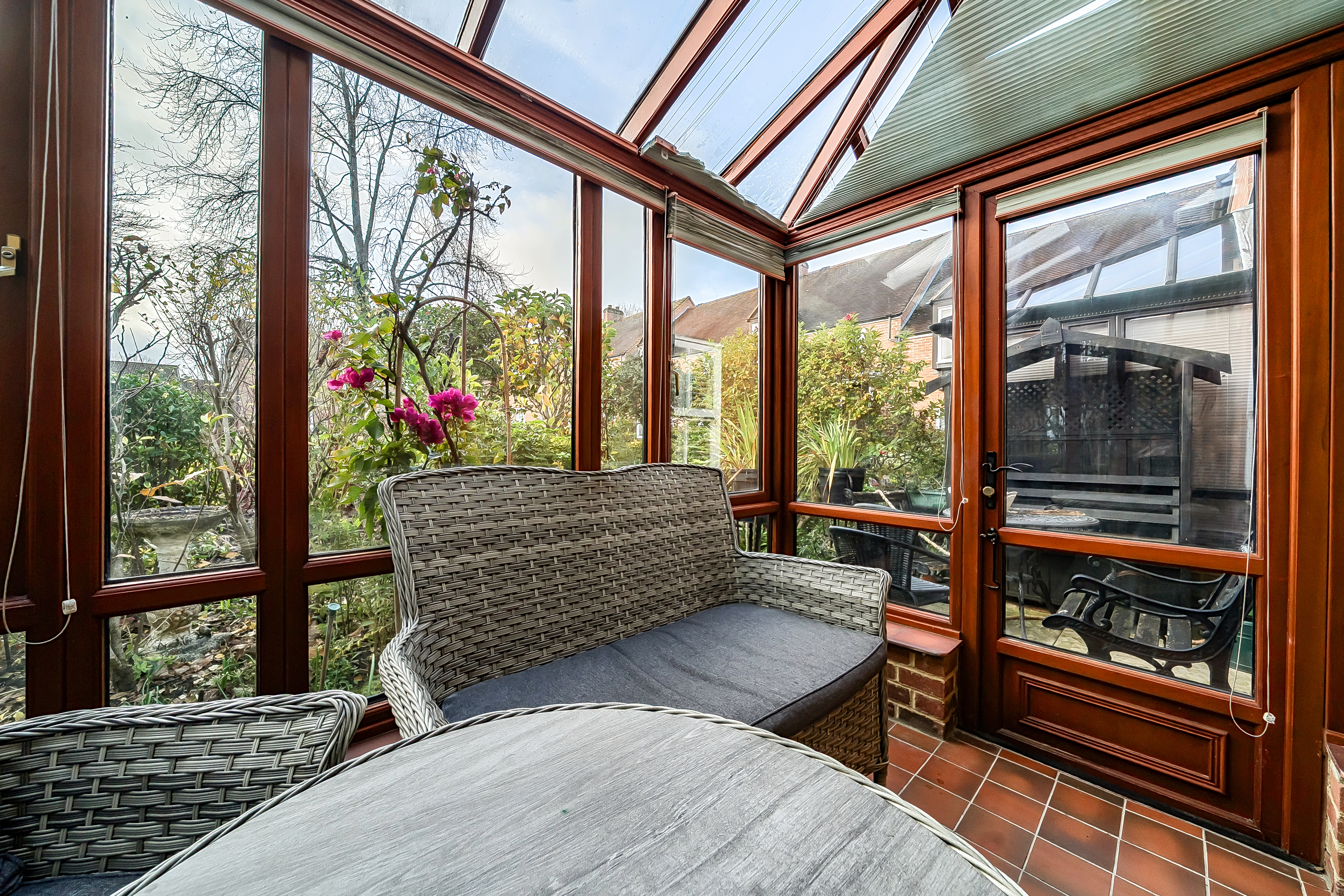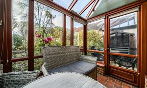 The spacious living room leads through to the dining room with double doors opening out into a sunny conservatory and access out to the rear of the property.