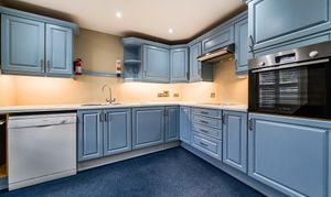The well appointed, fitted kitchen benefits from wall/base cabinets and partially integrated appliances.