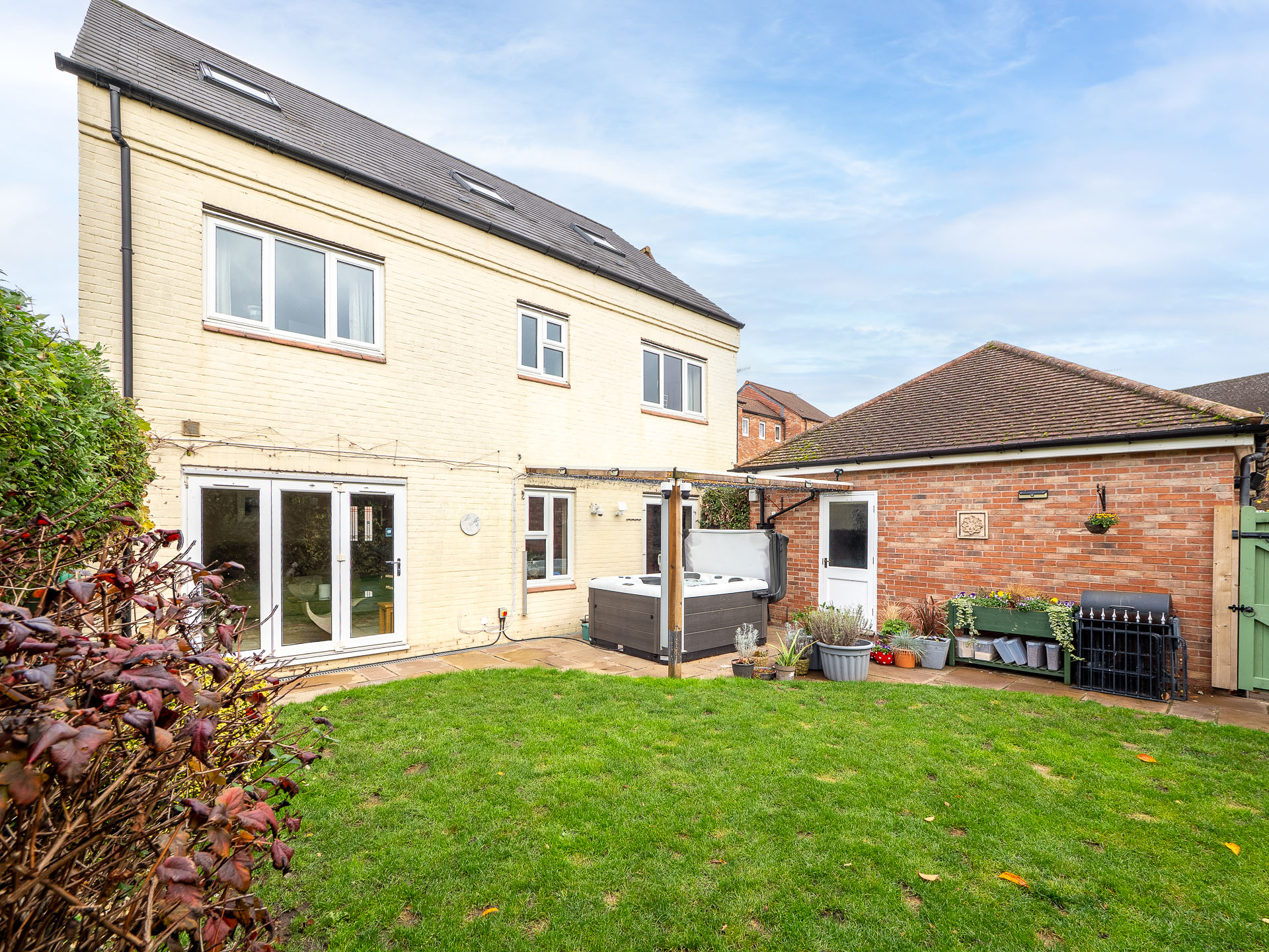 After being wowed by the beautiful and mature wisteria on the front of the property, you are welcomed by a grand foyer that sets the tone for the elegance that flows throughout the home. The gourmet kitchen is a culinary enthusiast's dream, equipped with modern appliances and ample counter space for culinary creations. Flowing through to the spacious, open plan living area that exudes warmth - perfect for cosy family gatherings or entertaining guests. Bi-fold doors open out to one of the highlights of this property, an indulgent hot tub! Offering a sanctuary for relaxation after a long day.