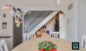 Stepping through the porch, the downstairs WC is immediately to your left, offering a useful and practical addition to the ground floor. Directly ahead are the stairs leading to the first floor. To the right of the stairs is the kitchen/dining room, which provides a straightforward space with room for everyday cooking and mealtimes.