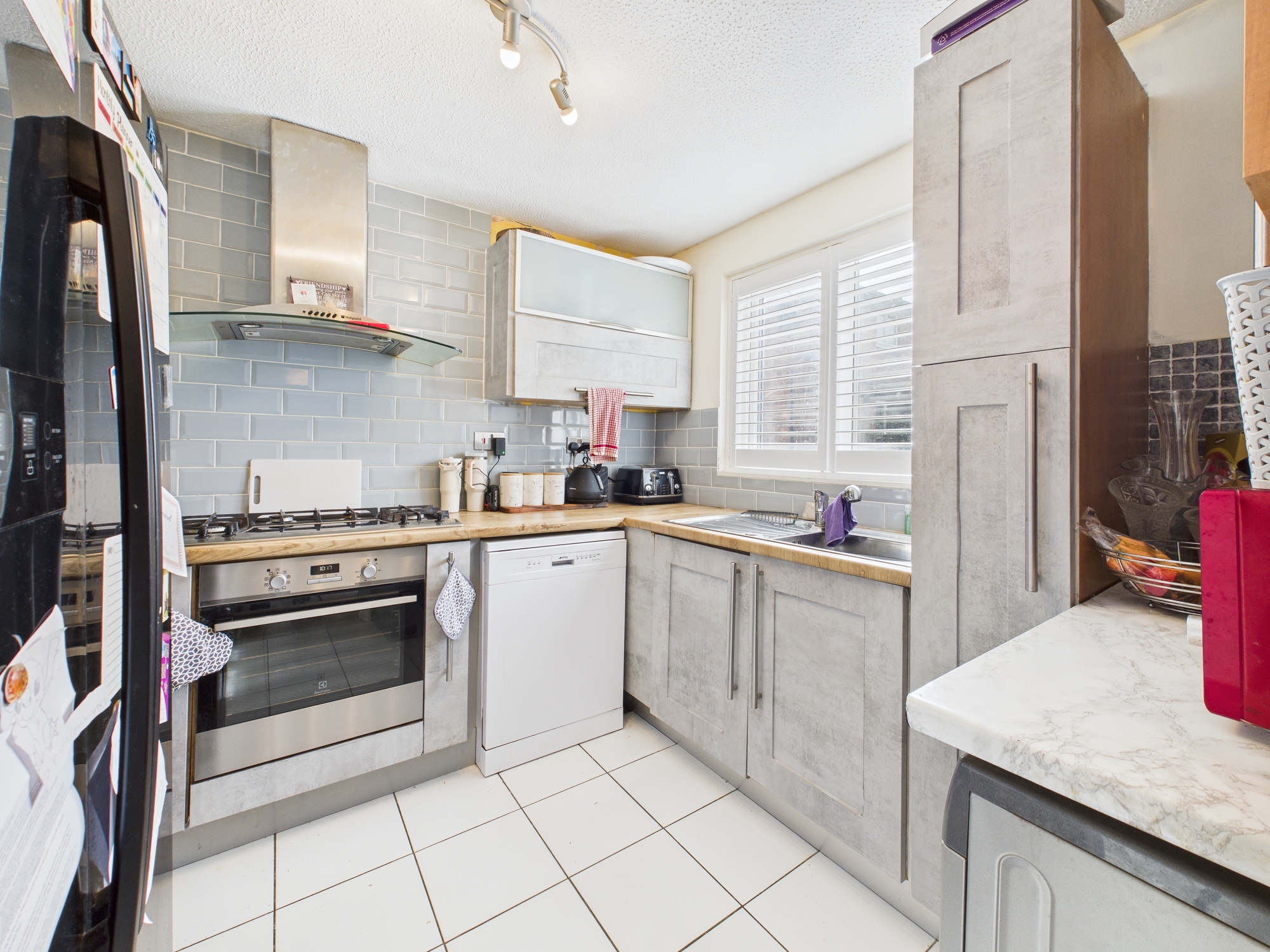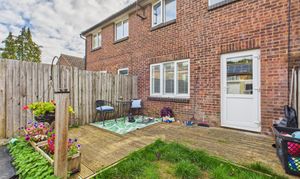 Situated in a cul-de-sac location, this terrace home offers an entrance hall, sitting/dining room and a kitchen to the ground floor. Upstairs there are three bedrooms, two of which are doubles and a bathroom. Outside there is a rear garden with lawn, deck and an outbuilding, together with a single garage and an allocated parking space.