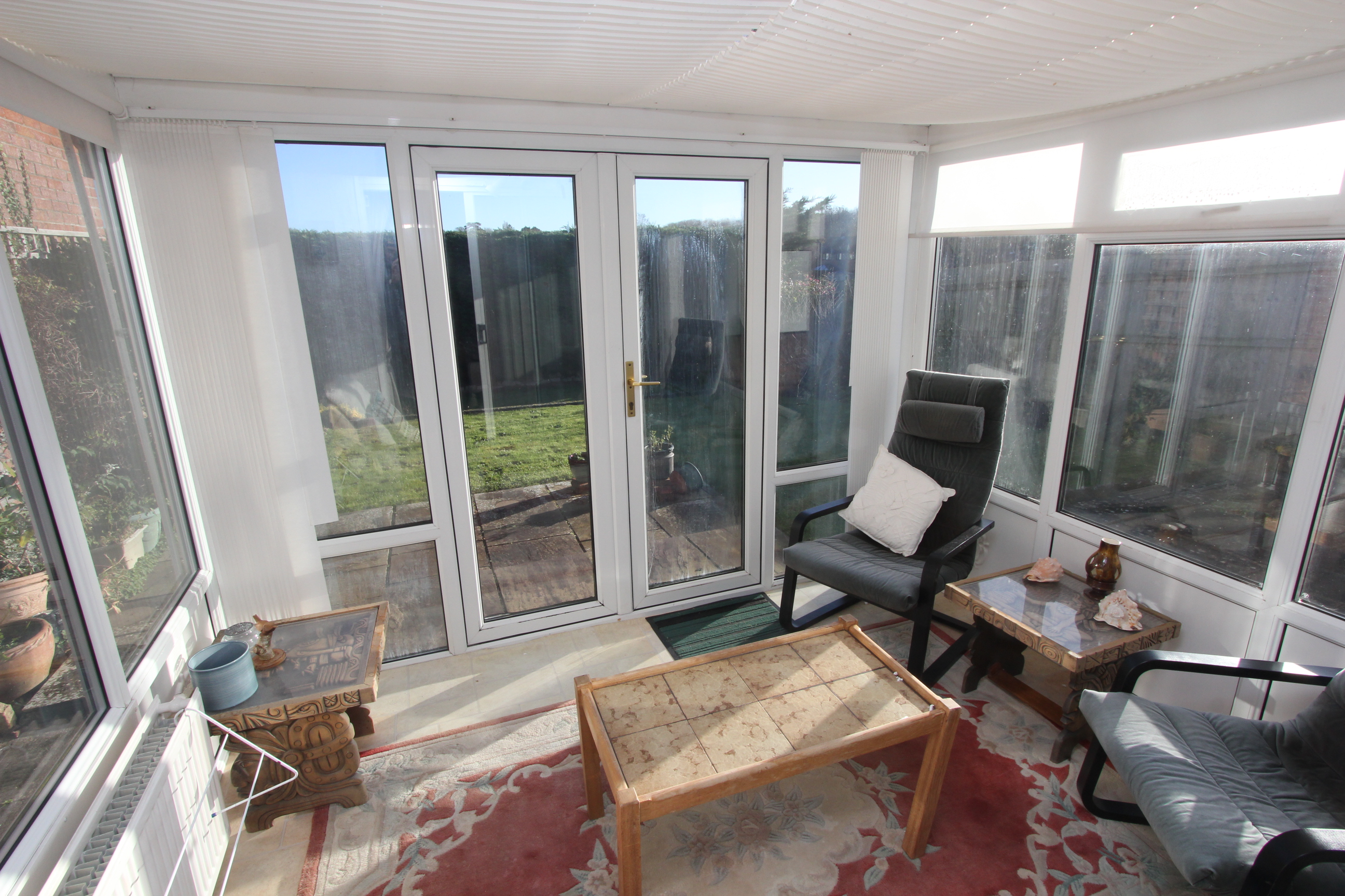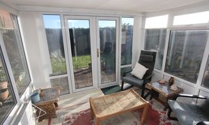 Patio doors to conservatory. Electric fire. Radiators.
