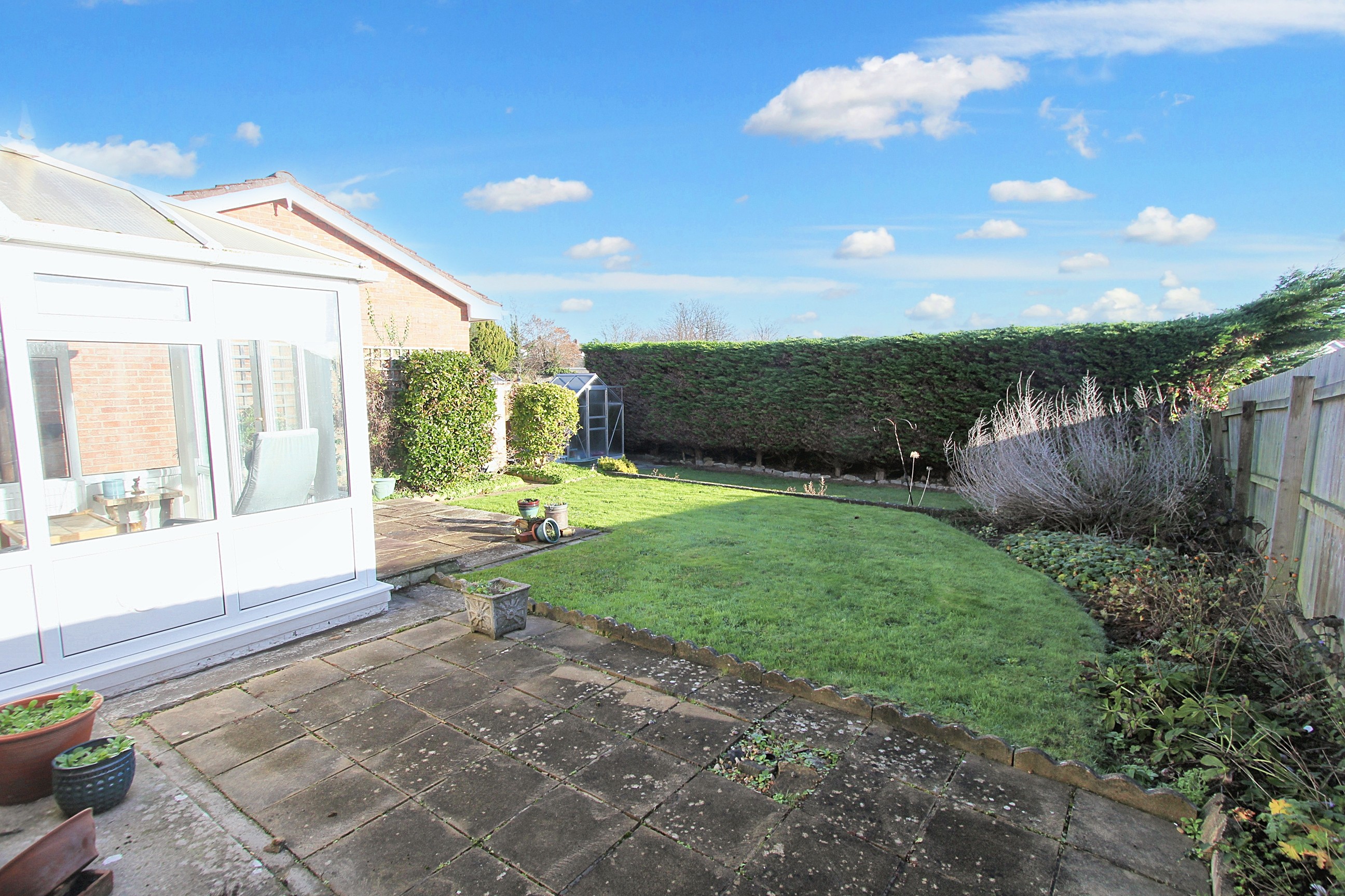 Front garden - open plan and laid to lawn. Rear Garden - enclosed and private, laid to lawn with greenhouse and shed.