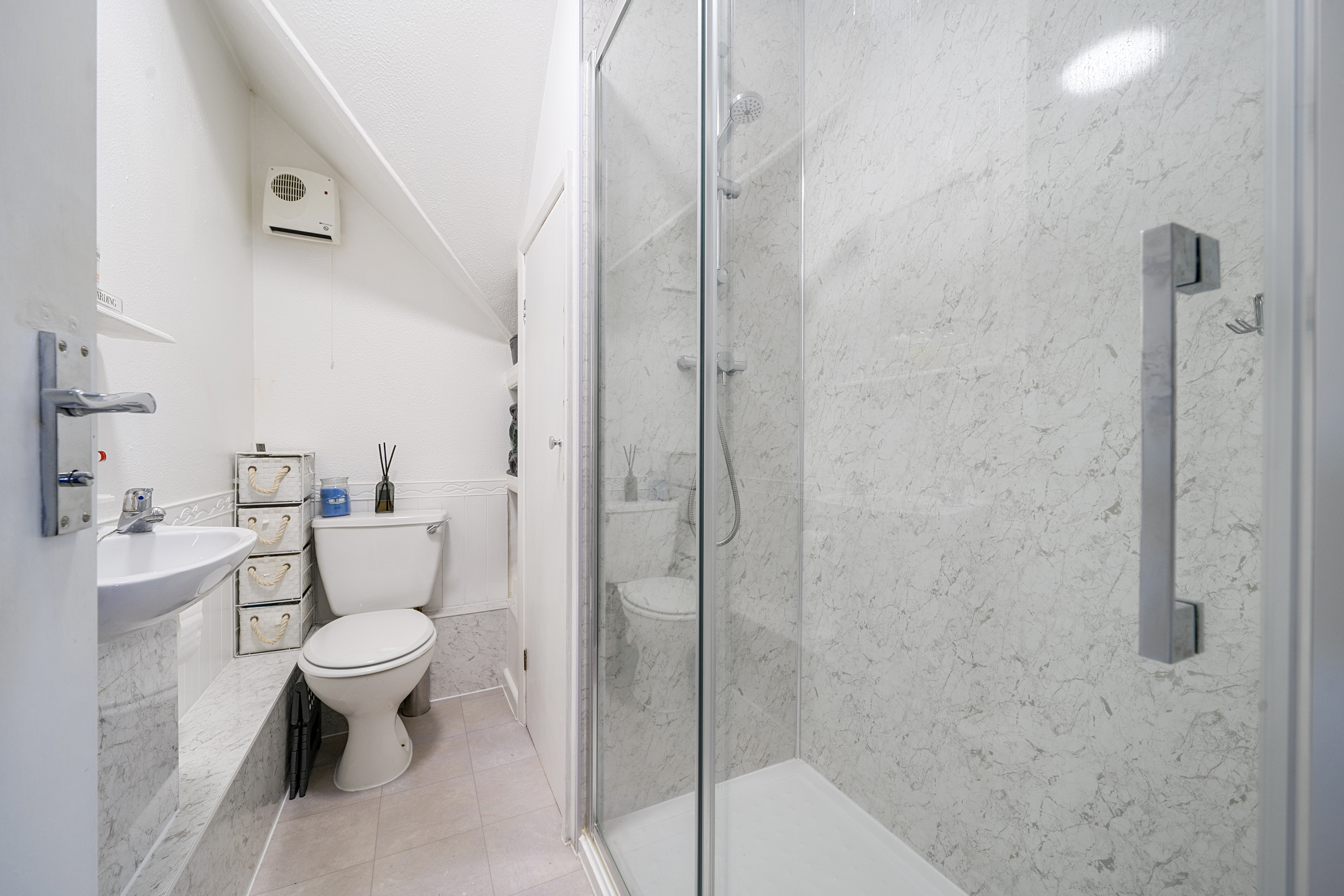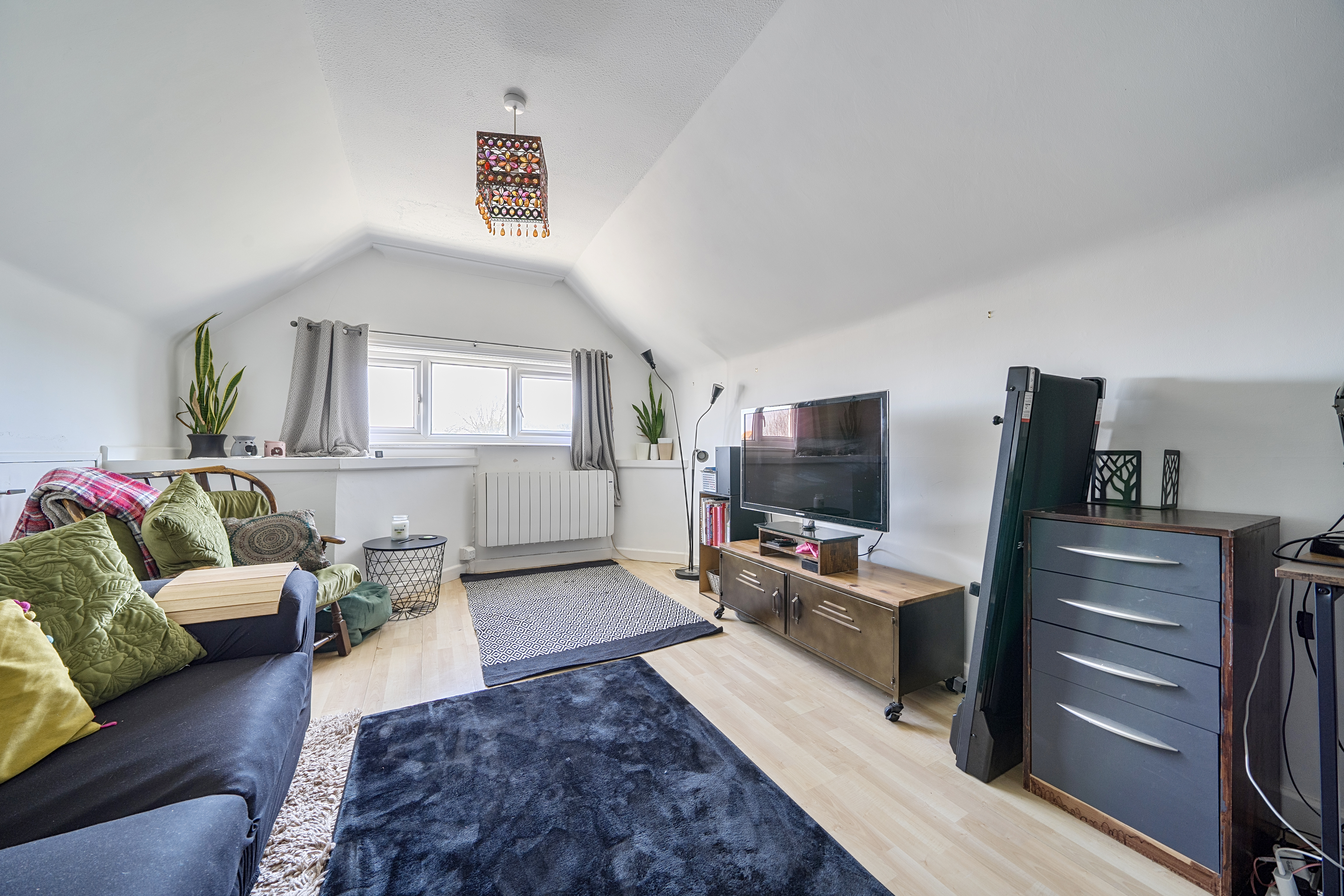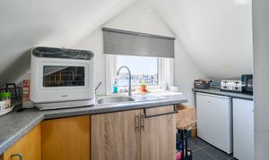 The double bedroom is well proportioned, with additional under eaves storage space. The bathroom is finished to a high standard with a large enclosed shower space and ample built in storage.