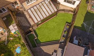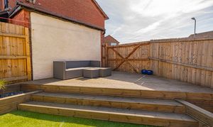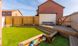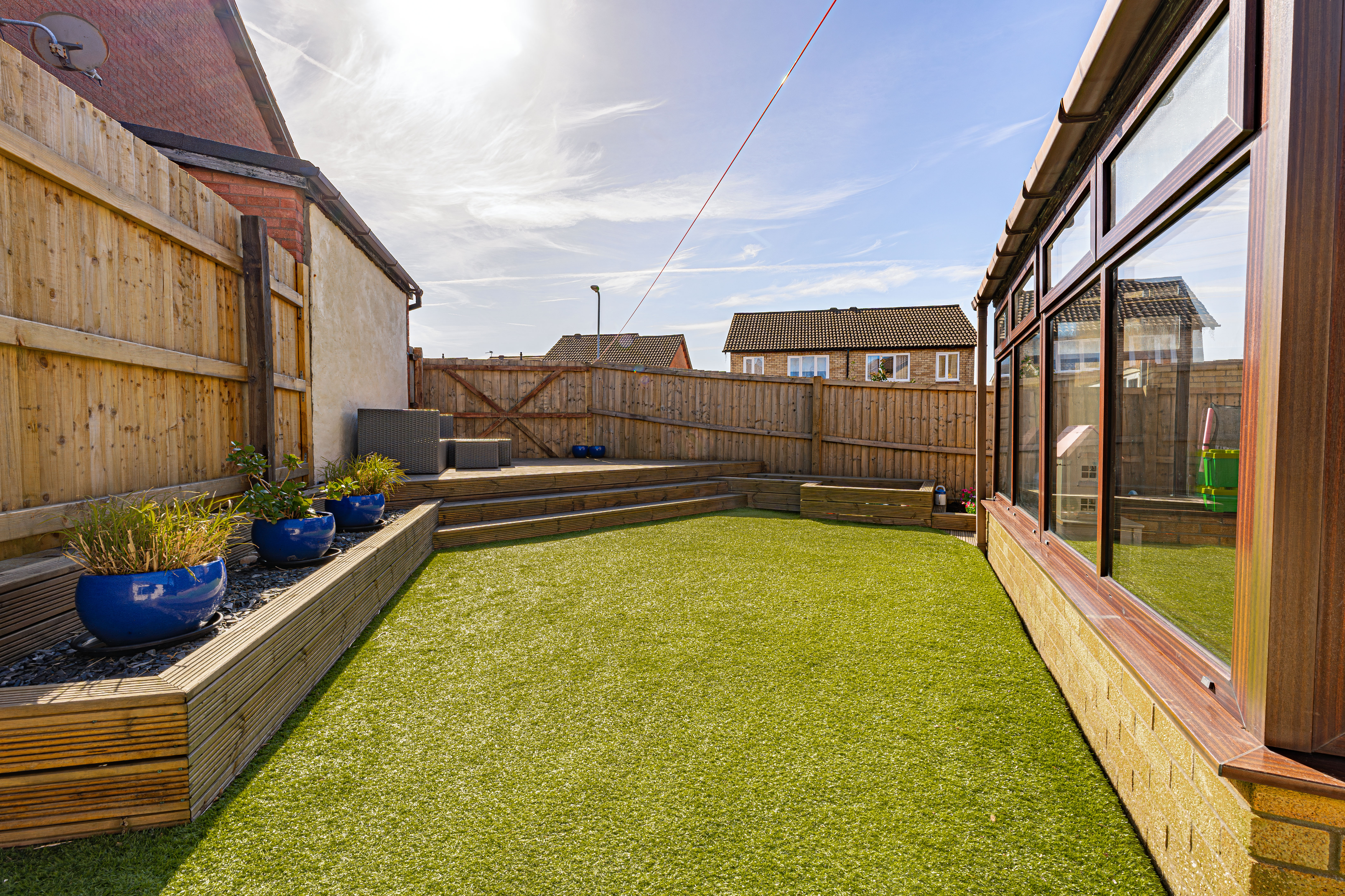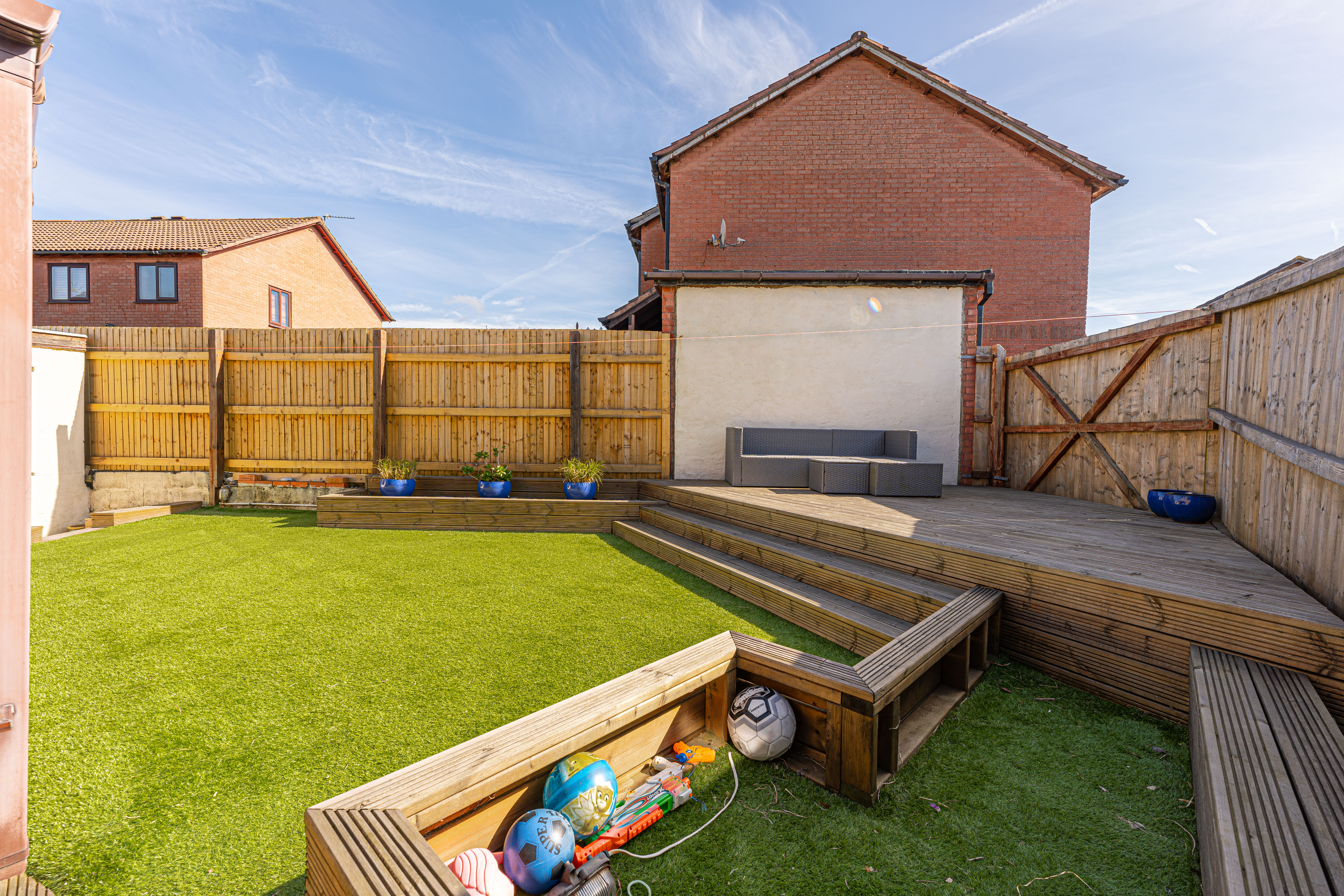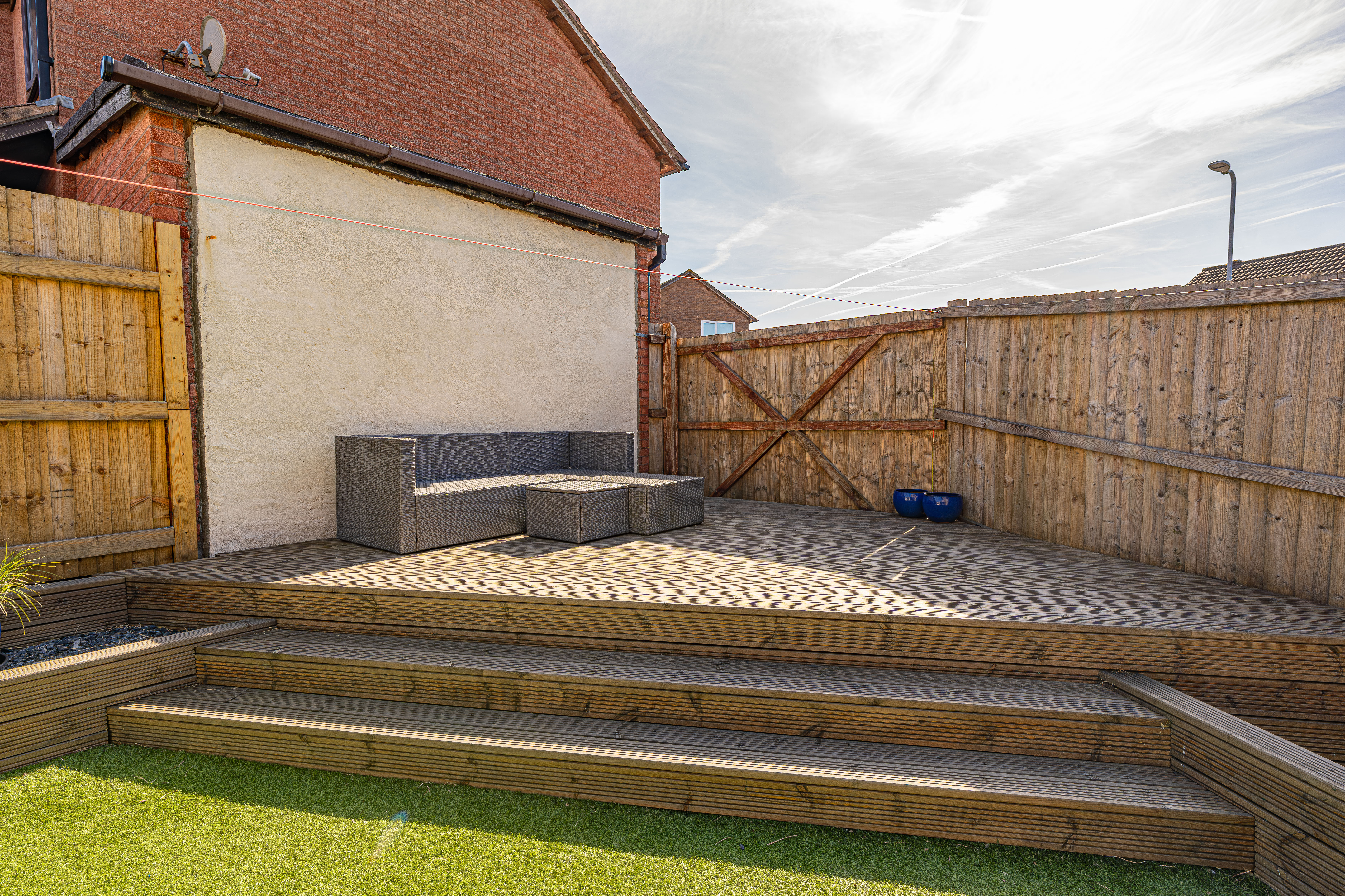 Stepping outside we have the fully enclosed rear garden, which features a blend of patio spaces, a decked seating area, and a low maintenance turf lawn, showcasing a wonderful space residents can enjoy, with plenty of areas that are well suited to lounging, al-fresco dining, and entertaining guests. Another highlight is the spacious 1.5 garage that offers a car pit for vehicle maintenance, as well as an ideal space for parking and storage, while a driveway at the front of the house provides off-road parking for 1-2 vehicles.