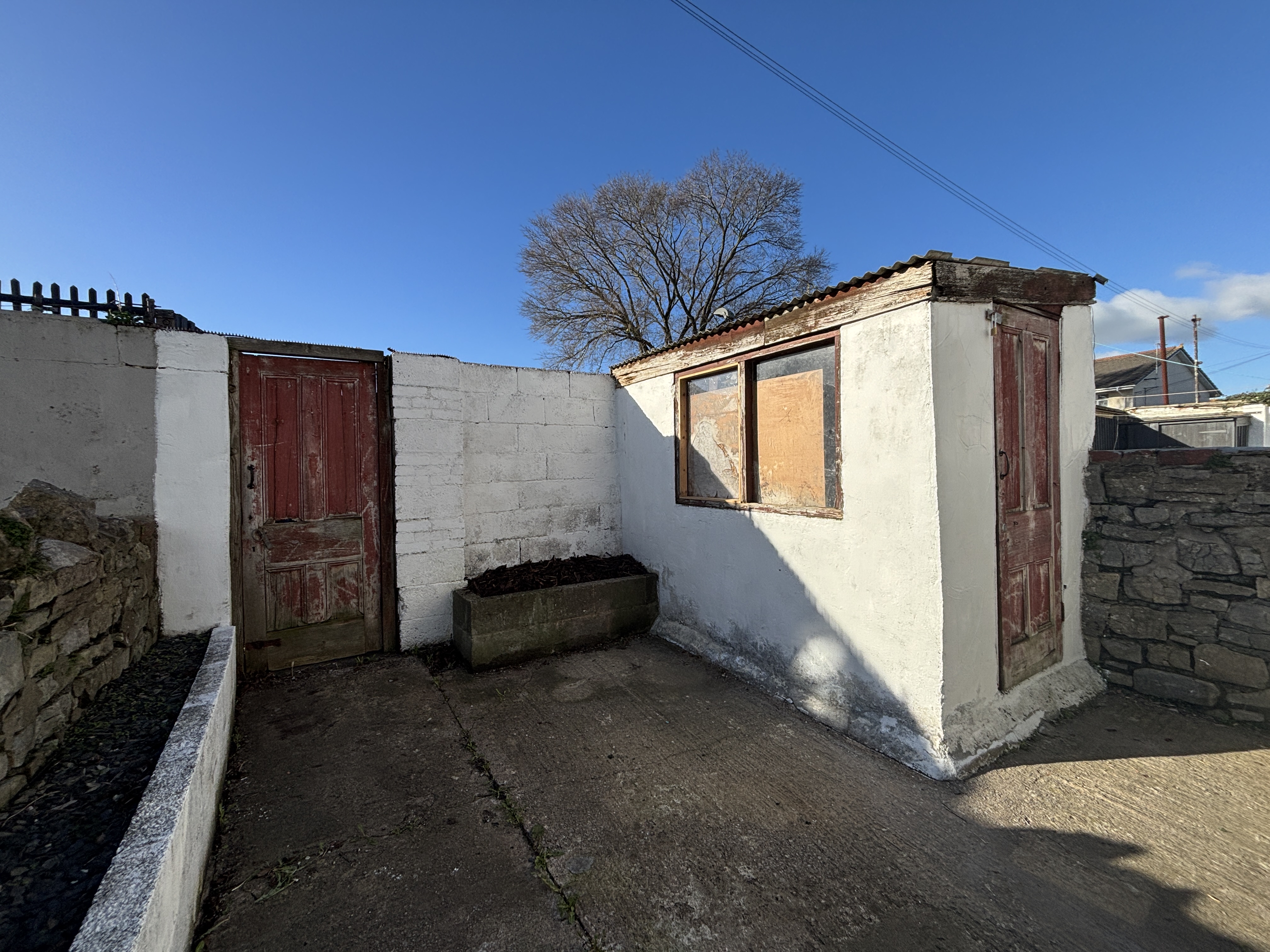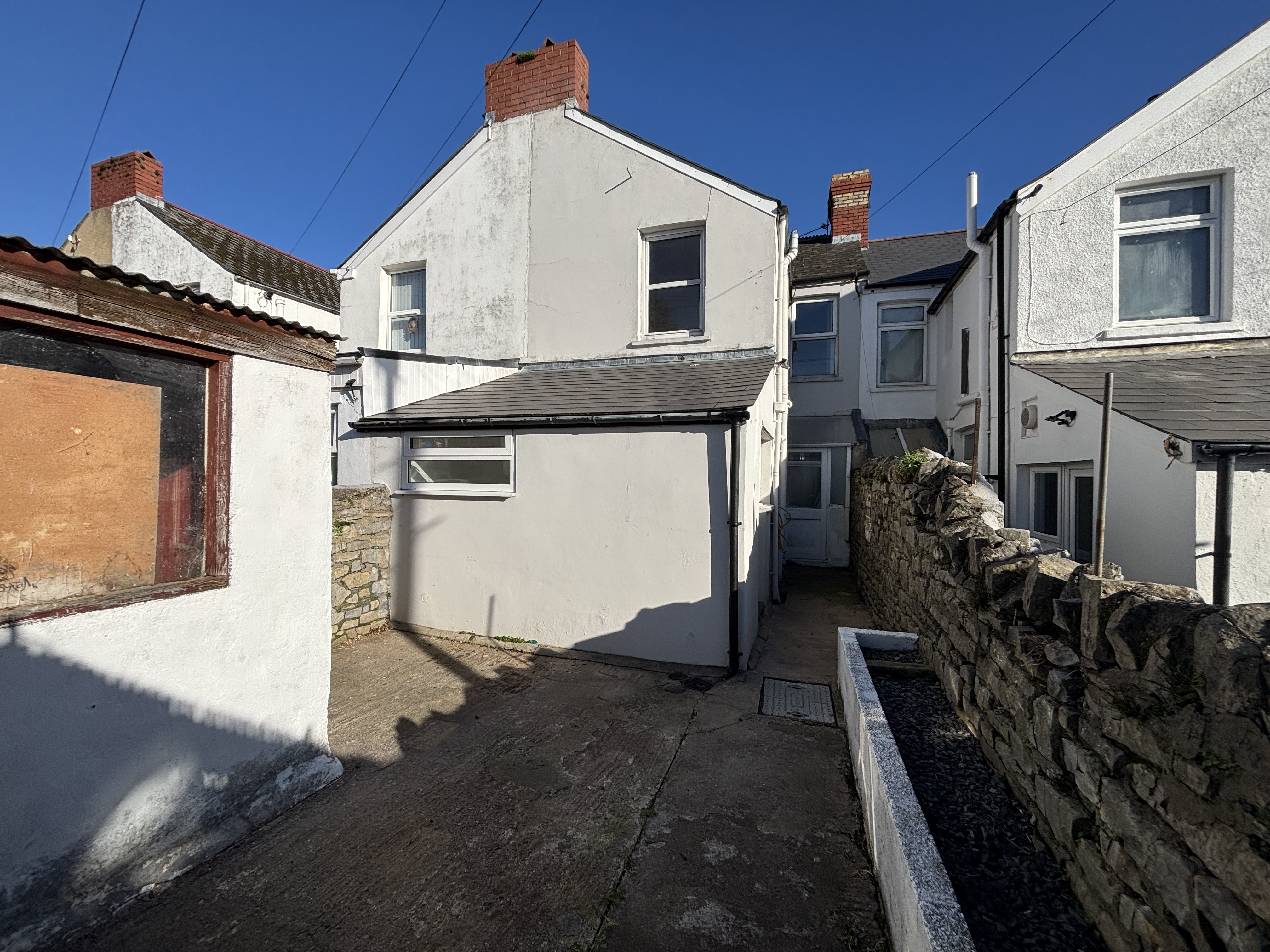 A low maintenance garden, fully enclosed by a mixture of stone and brick walls. A wooden gate provides access to the rear lane. There is also a handy storage shed.