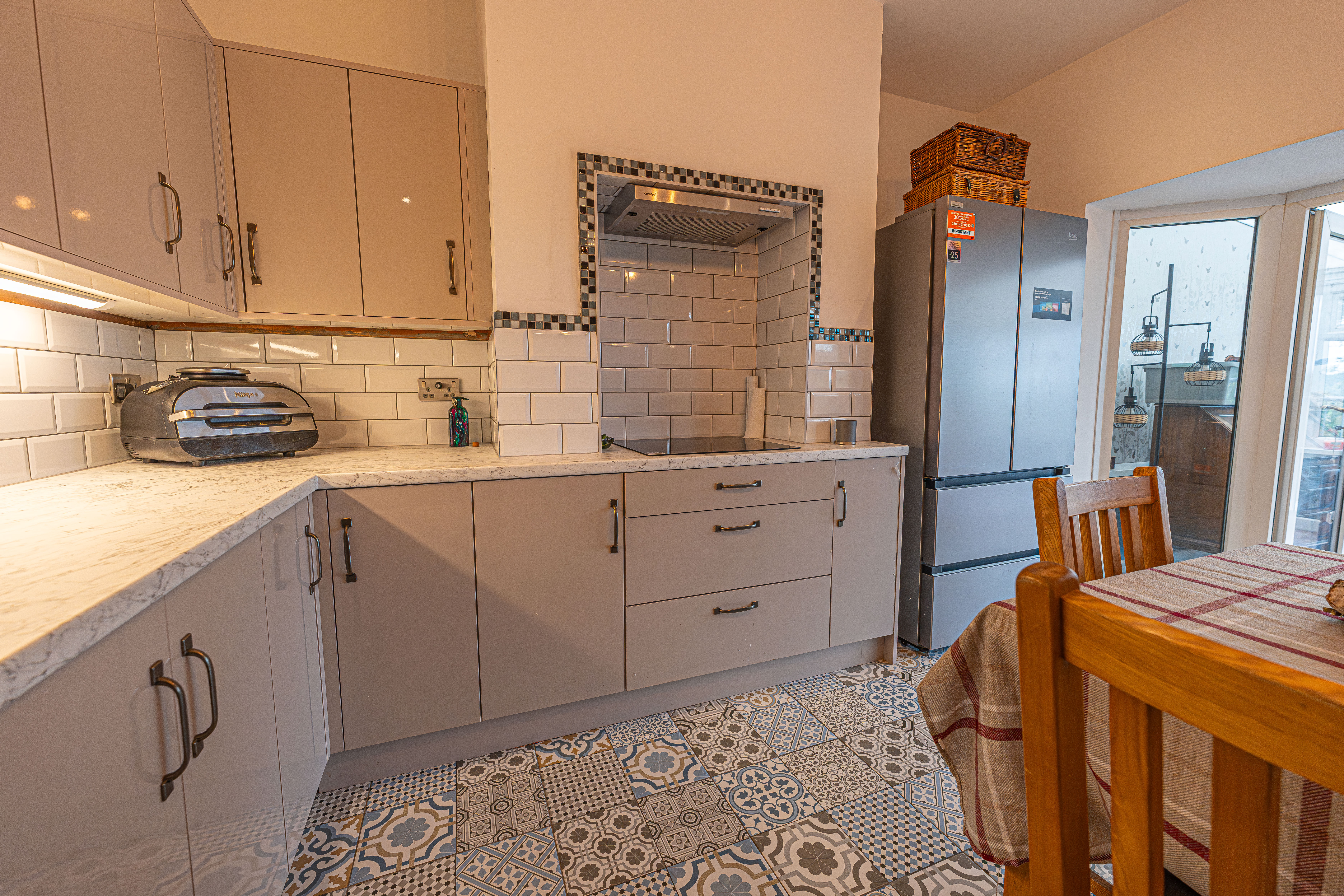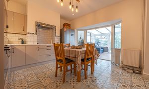This impressive three-bedroom, two-bathroom semi-detached house offers a superb blend of contemporary living and original features throughout. This is apparent upon entry to the spacious lounge at the front of the house, which is fitted with a charming fireplace and bay windows to flood the room with natural light. Continuing through the house we arrive at the large kitchen, which features modern storage units, integrated appliances, and decorative floor tiles. The kitchen also benefits from a fluid open plan design to incorporate the dining area and neighbouring reception room, as well as flowing seamlessly into a bright conservatory with bi-fold doors to the rear, which is bathed in natural light and perfect for relaxing and entertaining.