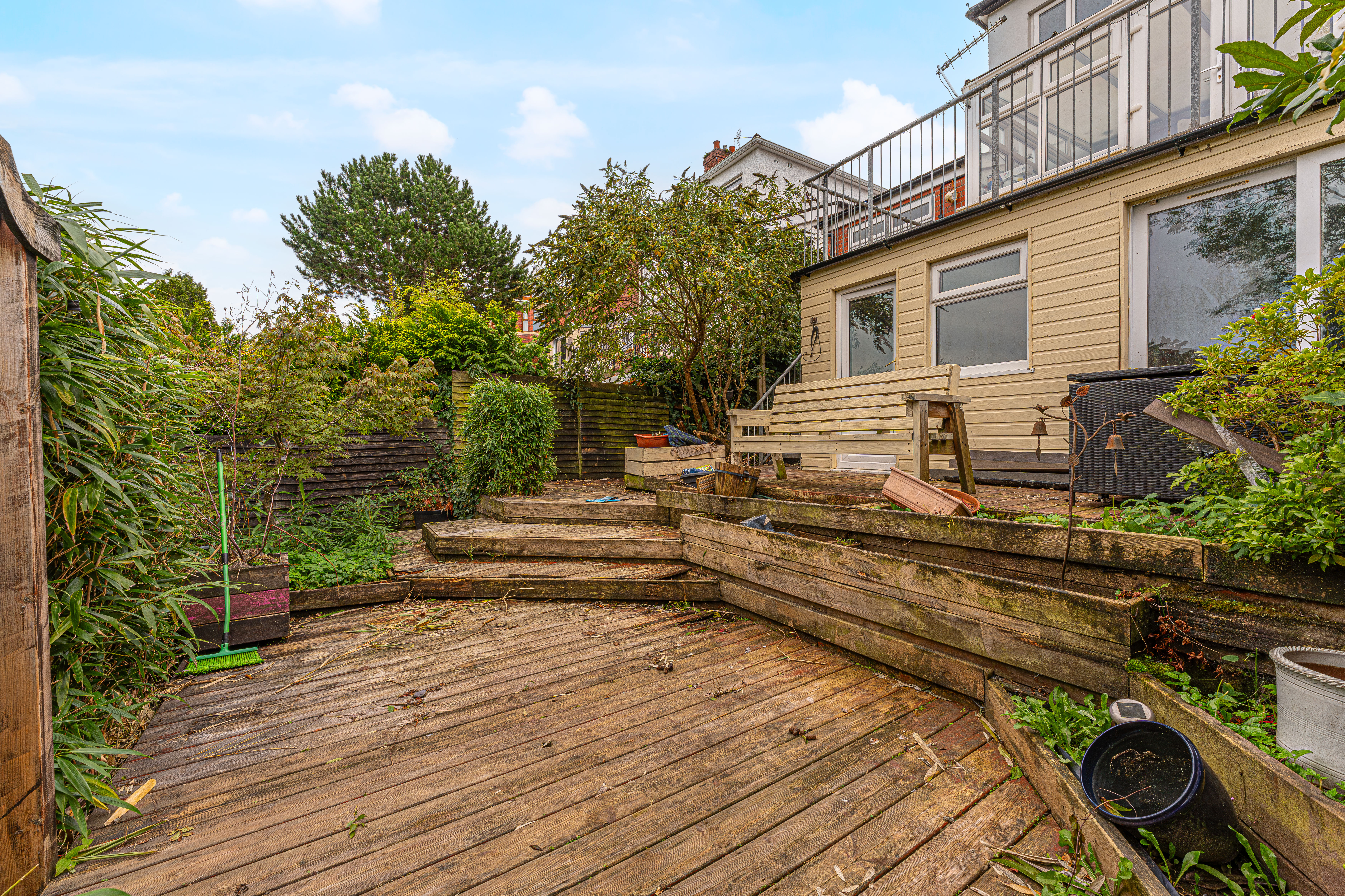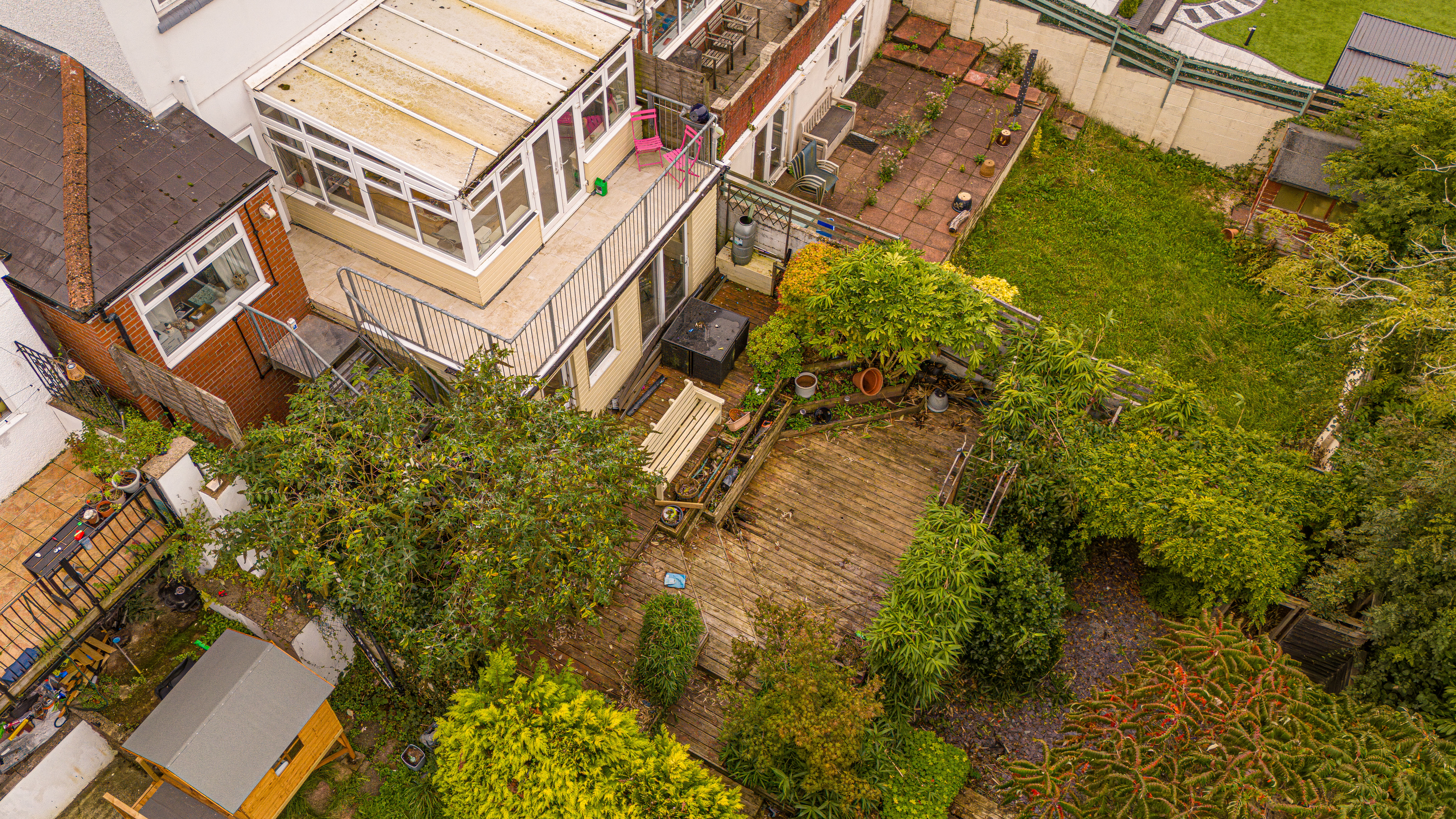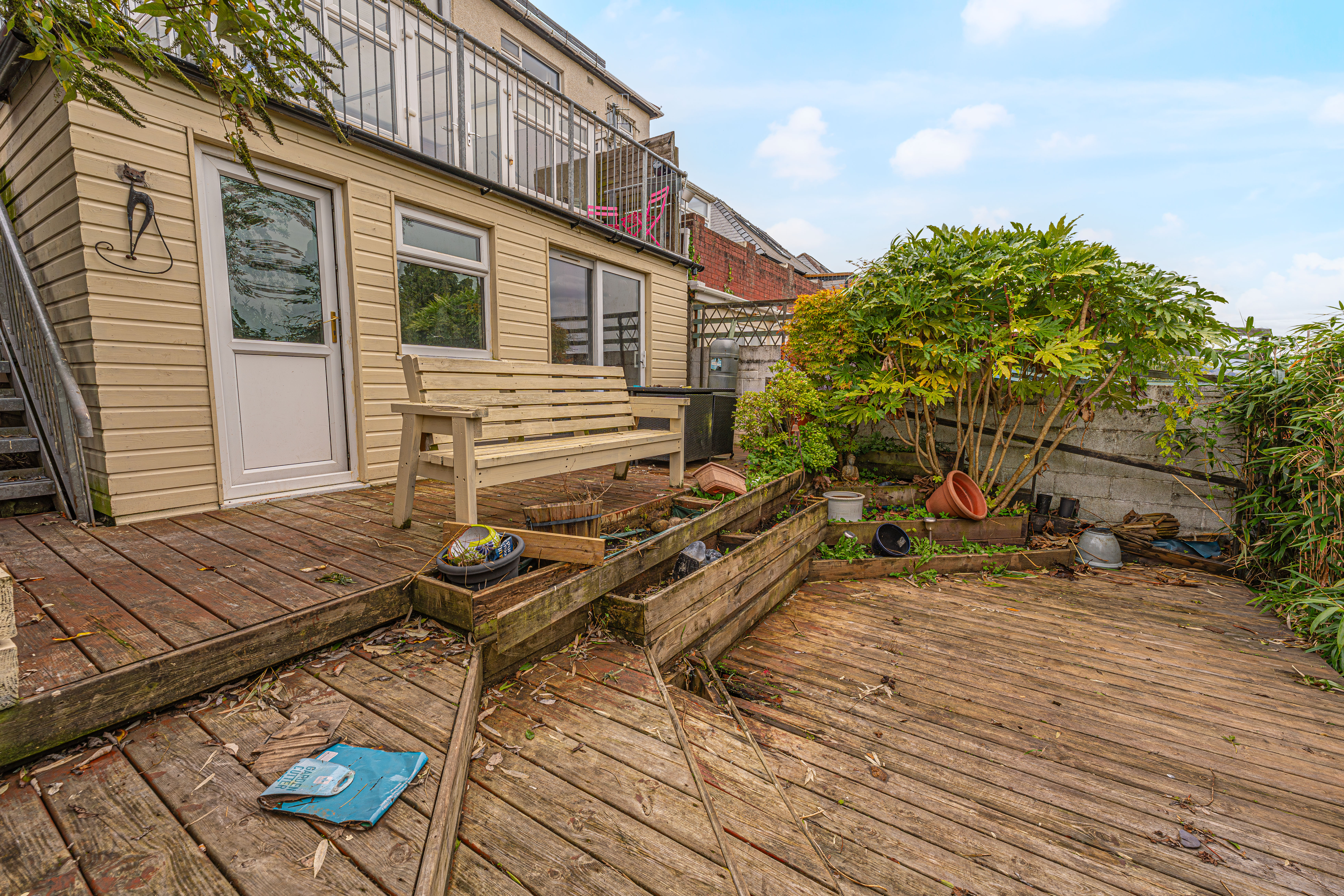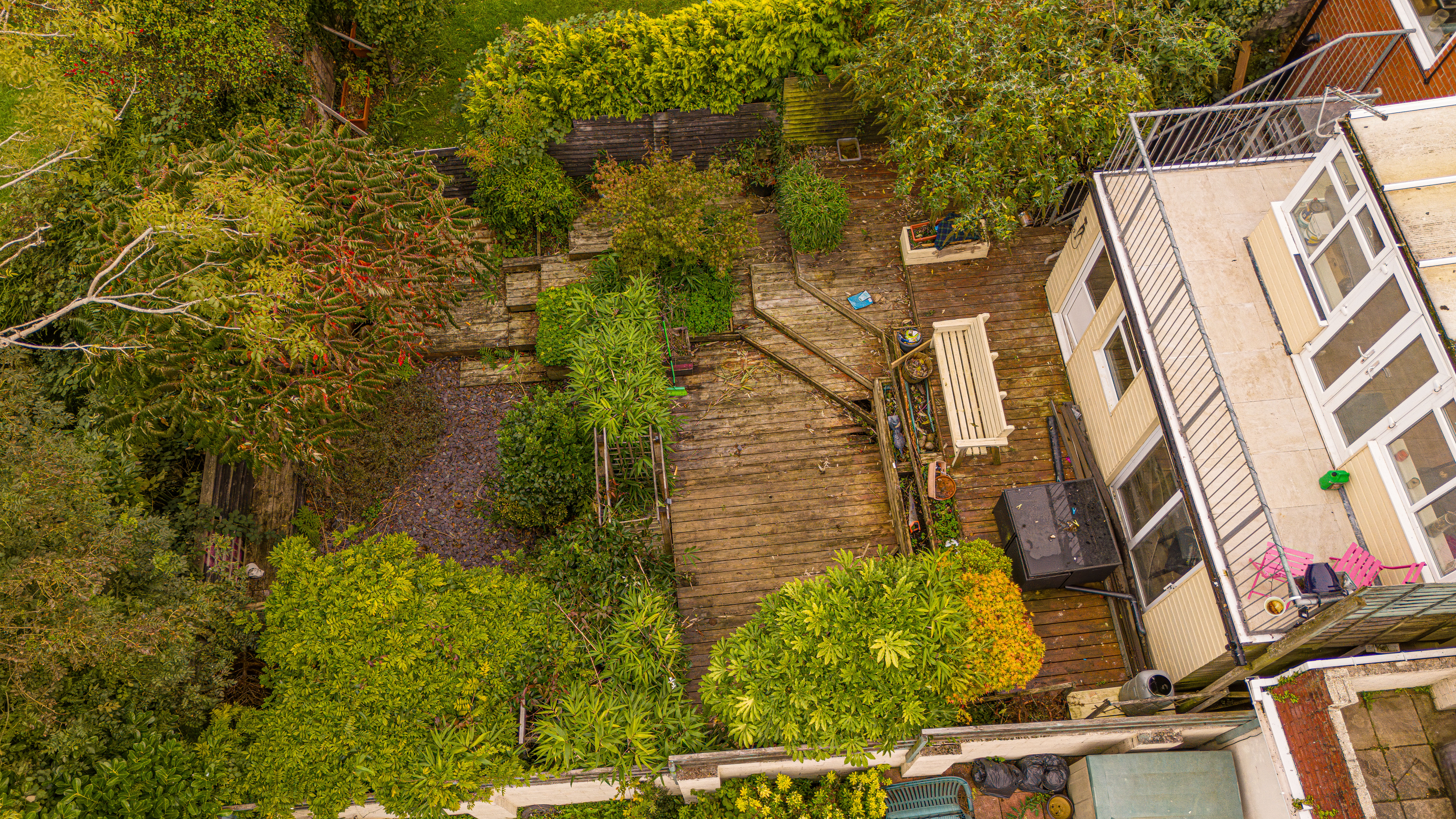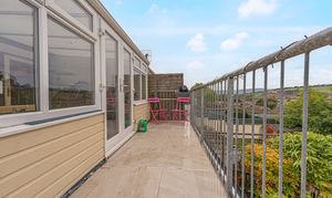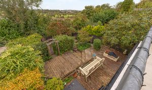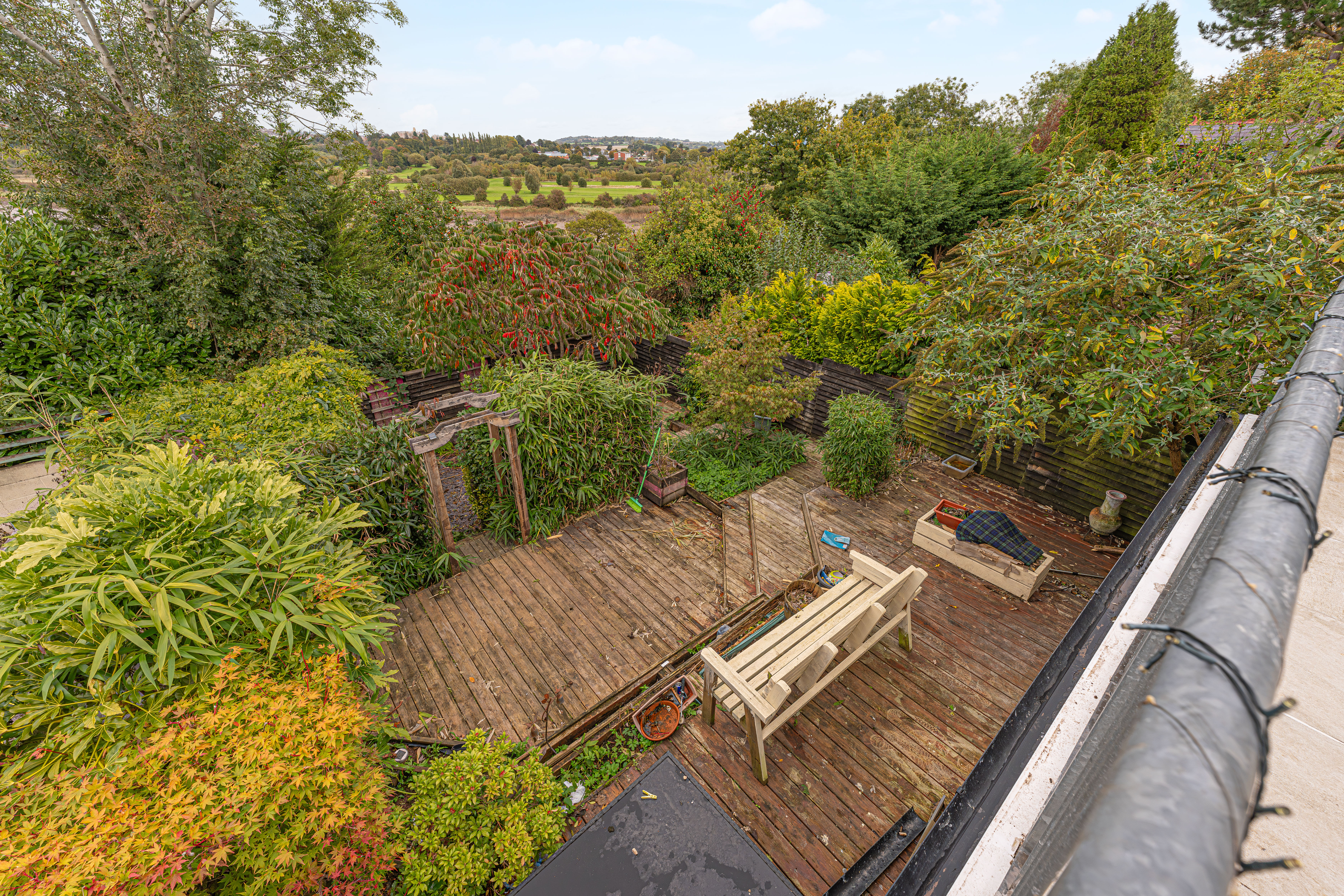 One of the home's standout features is its expansive balcony, which invites you to relax with stunning panoramic views of the surrounding countryside. From the balcony we can also step down to the wonderful private garden, which is adorned with a blend of mature trees and lush greenery, whilst providing multiple decked patio and outdoor seating areas - perfect for entertaining or unwinding in peace. From the garden we can also find a useful storage room, which offers an impressive deal of potential for development into another bedroom, reception room or multi-functional space, with multiple windows and sliding doors opening directly to the deck.