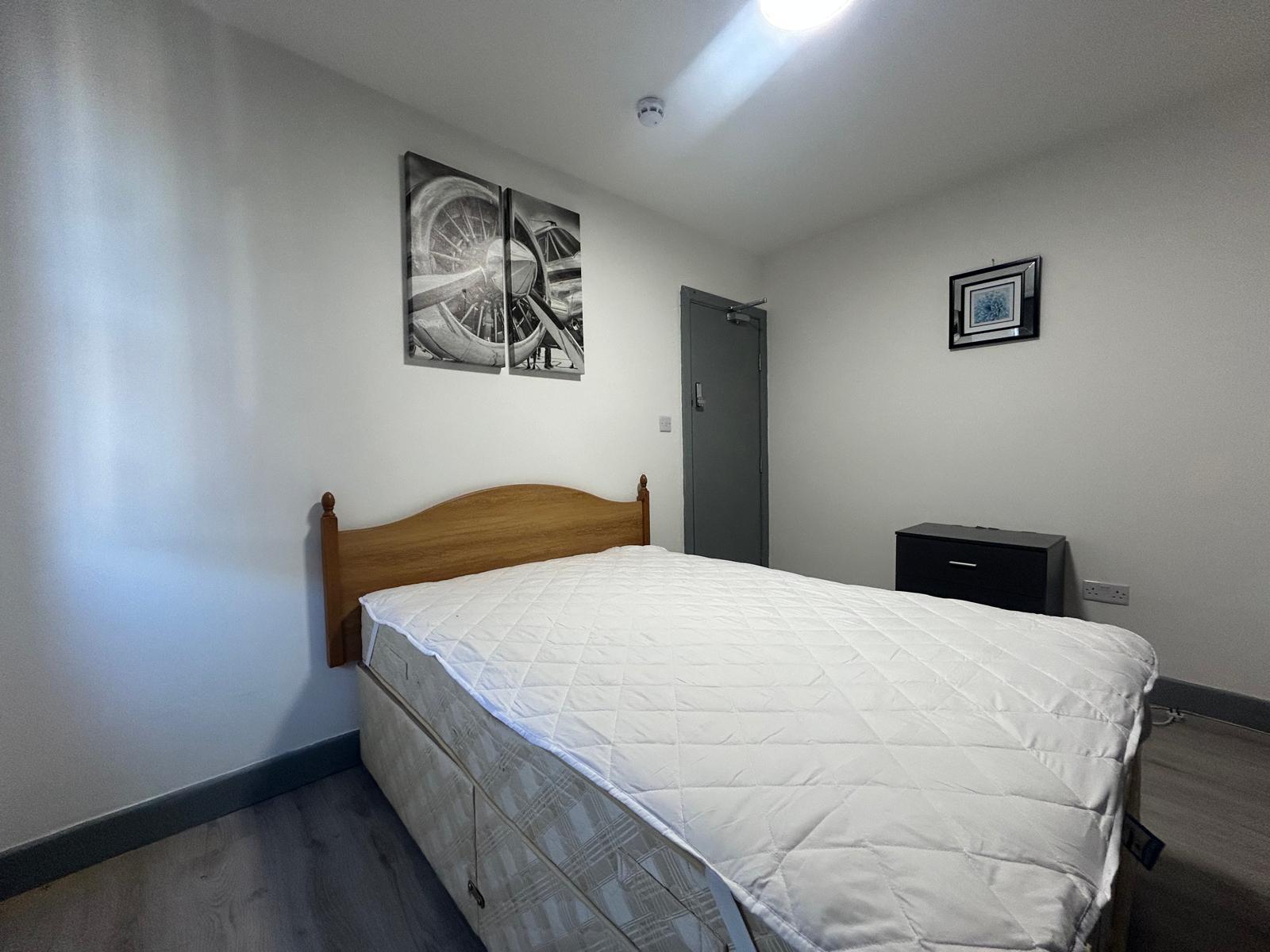 This spacious double bedroom is available to rent in a fully licensed HMO, ideal for a single professional. The room is fully furnished and benefits from its own private en-suite shower room, offering comfort and privacy. Residents also have access to a modern shared kitchen with ample storage and cooking facilities. The property is well maintained and designed for professional living. All bills are included in the rent, covering gas, electricity, water, council tax, Wi-Fi, and TV licence, providing hassle-free living. Single occupancy only. Applicants must be in full-time employment with a minimum annual income of £20,000.
