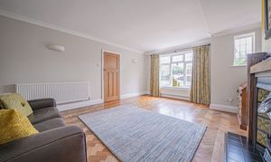 The ground floor offers three additional reception rooms, currently utilised as a living room, dining room, and a versatile home office that could easily transition into a playroom. Completing this level is a single garage and a guest cloakroom, providing practicality and convenience for modern family living.