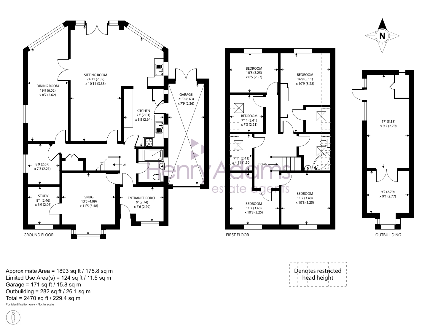 To the front an in-an-out driveway provides parking and leads to a garage. There is a mature secluded garden to the rear with a useful outbuilding.